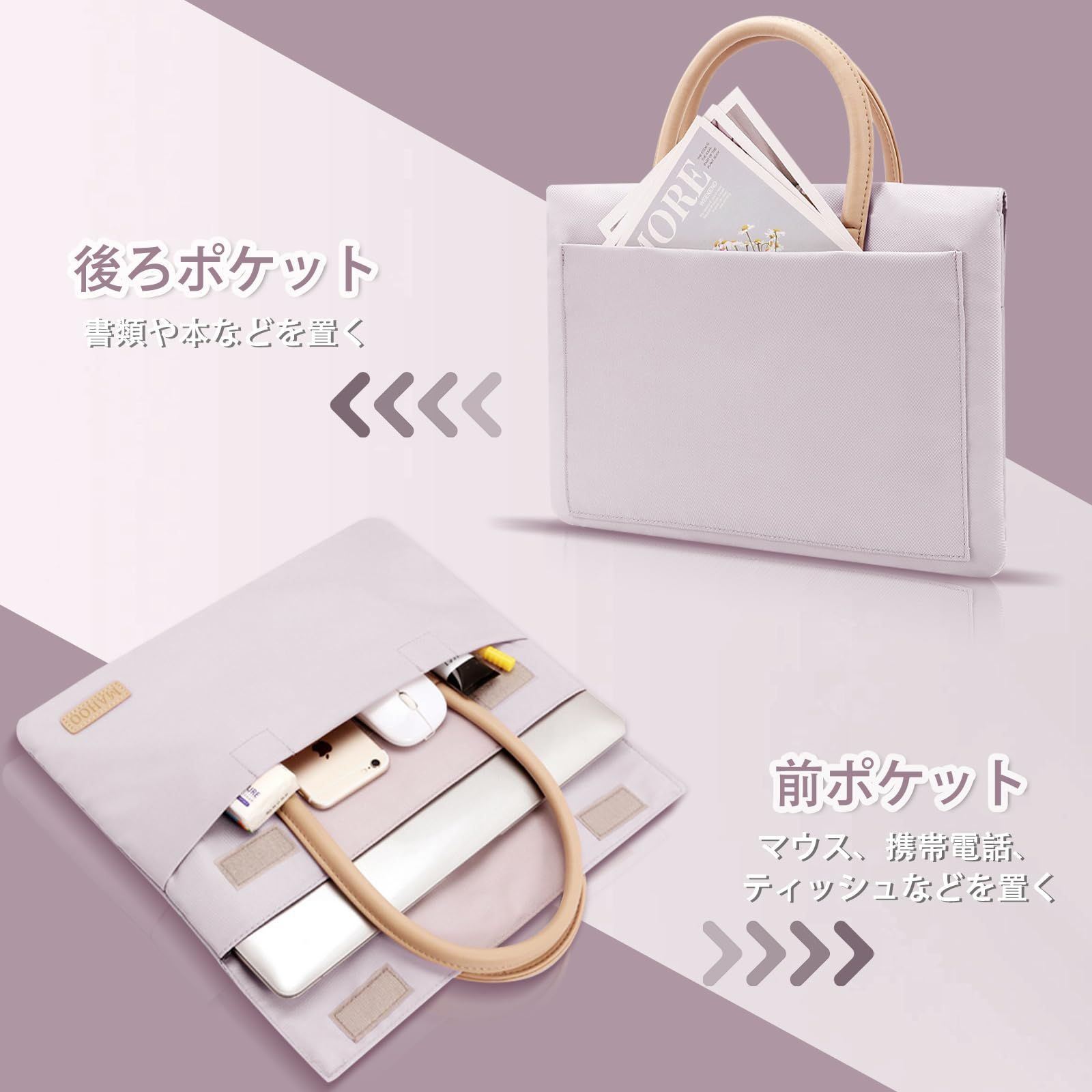 ノートパソコンケース 13.3-14 インチ コンパチブルMacBook Air M2/M1 2022-2018 MacBook Pro 2022-2016 M2/M1 12.9 iPad Pro 6-3世代 ノートPCバッグ PCケース パソコンバッグ オックスフォード 手提げファイルバッグ キズ防止 撥水加工 通勤通学 パソコンカバー 電源収納ポーチ付き(パープル)