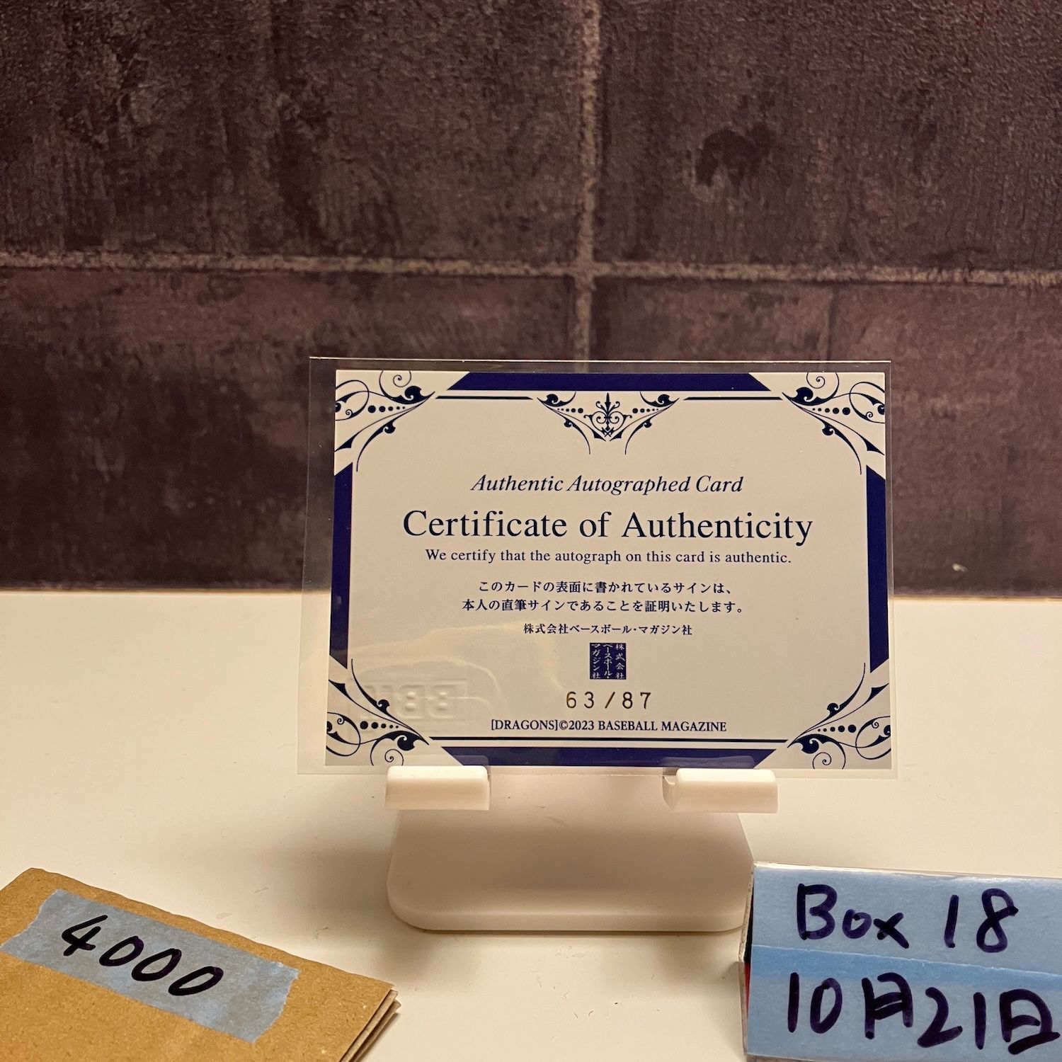2023 BBM 荒木雅博 63/87 直筆サインカード 中日ドラゴンズ