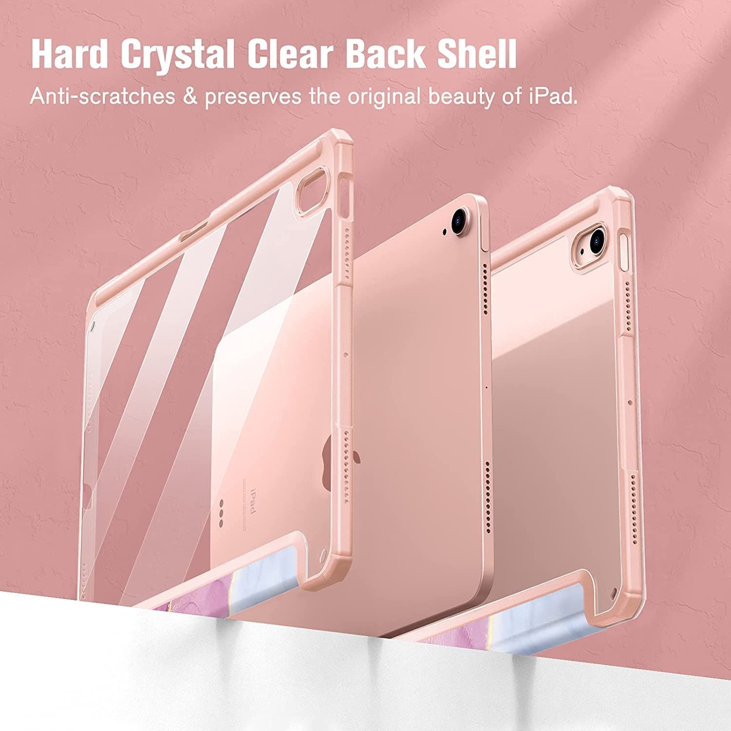 Fintie iPad Air 11インチ ケース M3 (2025 第7世代) / M2 (2024 第6世代) / Air 5/4 ケース 2022/2020 10.9 インチ 透明バックカバー Apple Pencil 収納可能 ワイヤレス充電対応 三つ折スタンド スリープ機能 軽量 薄型 傷つけ防止 PU合成レザー TPU(柄 X マーブルピンクA)