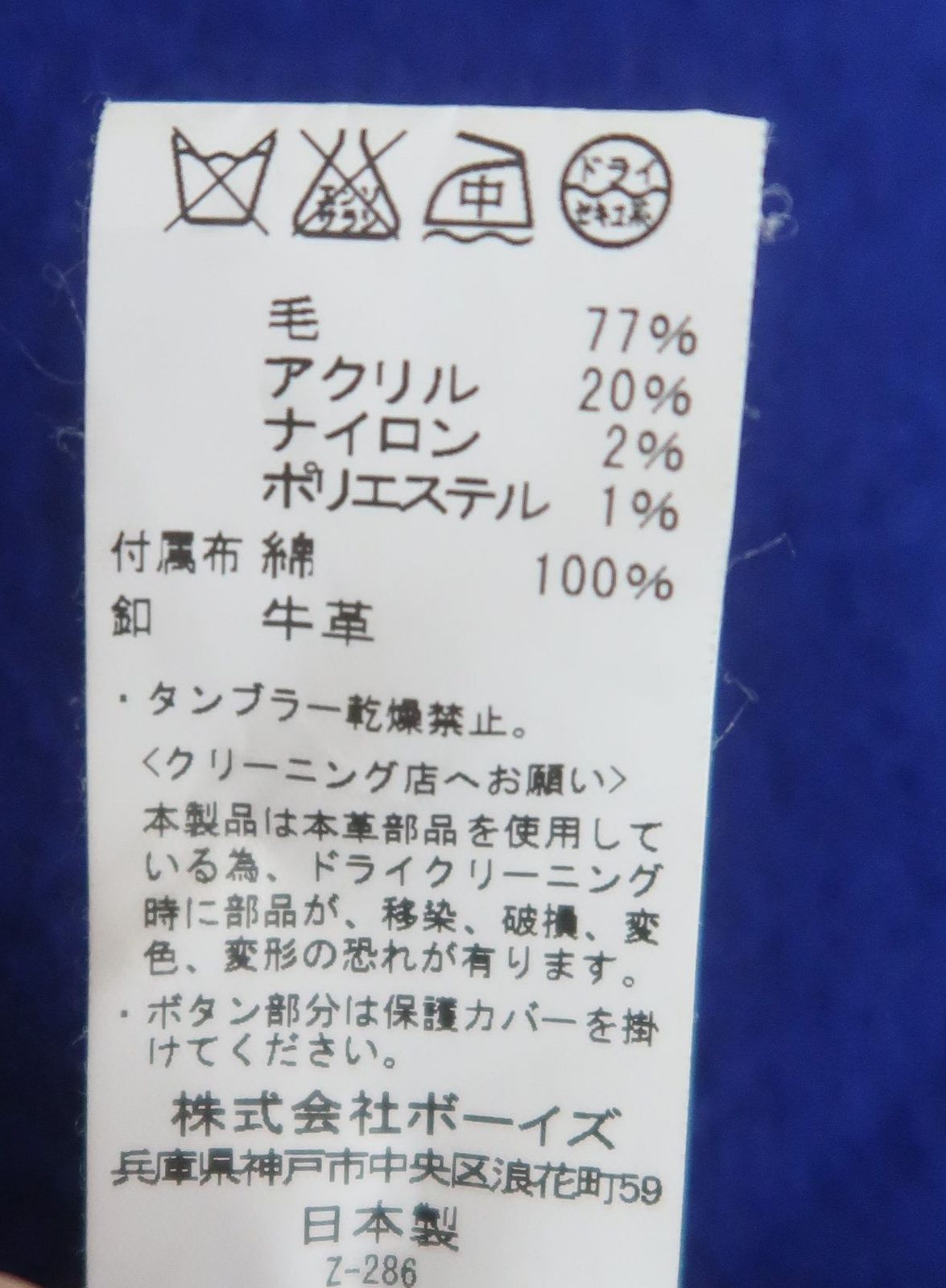 素材:毛77% アクリル20% ナイロン2% ポリエステル1%