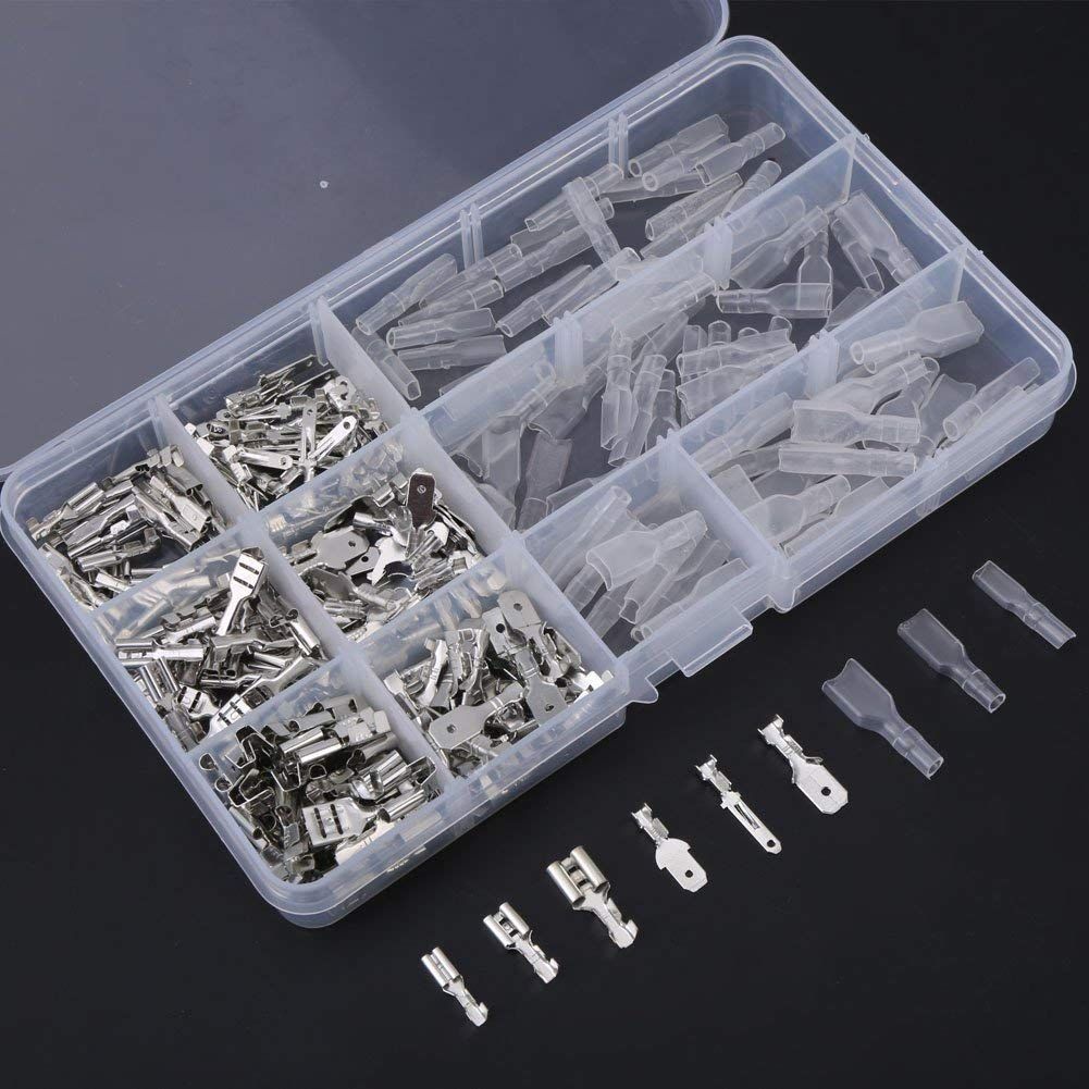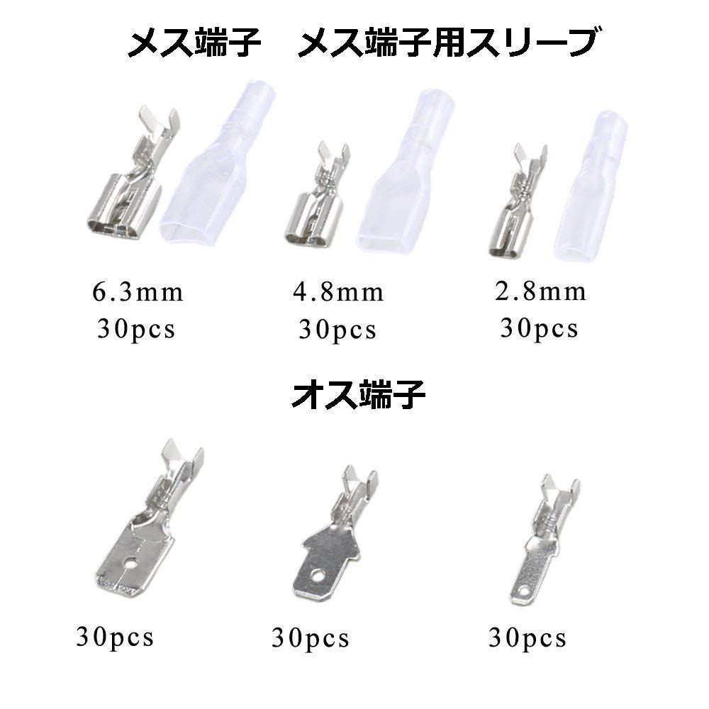 waves プラケース入り オス メス ヒラ端子 連鎖形 圧着端子 平形 差込 180個 + スリーブ90個 計270個