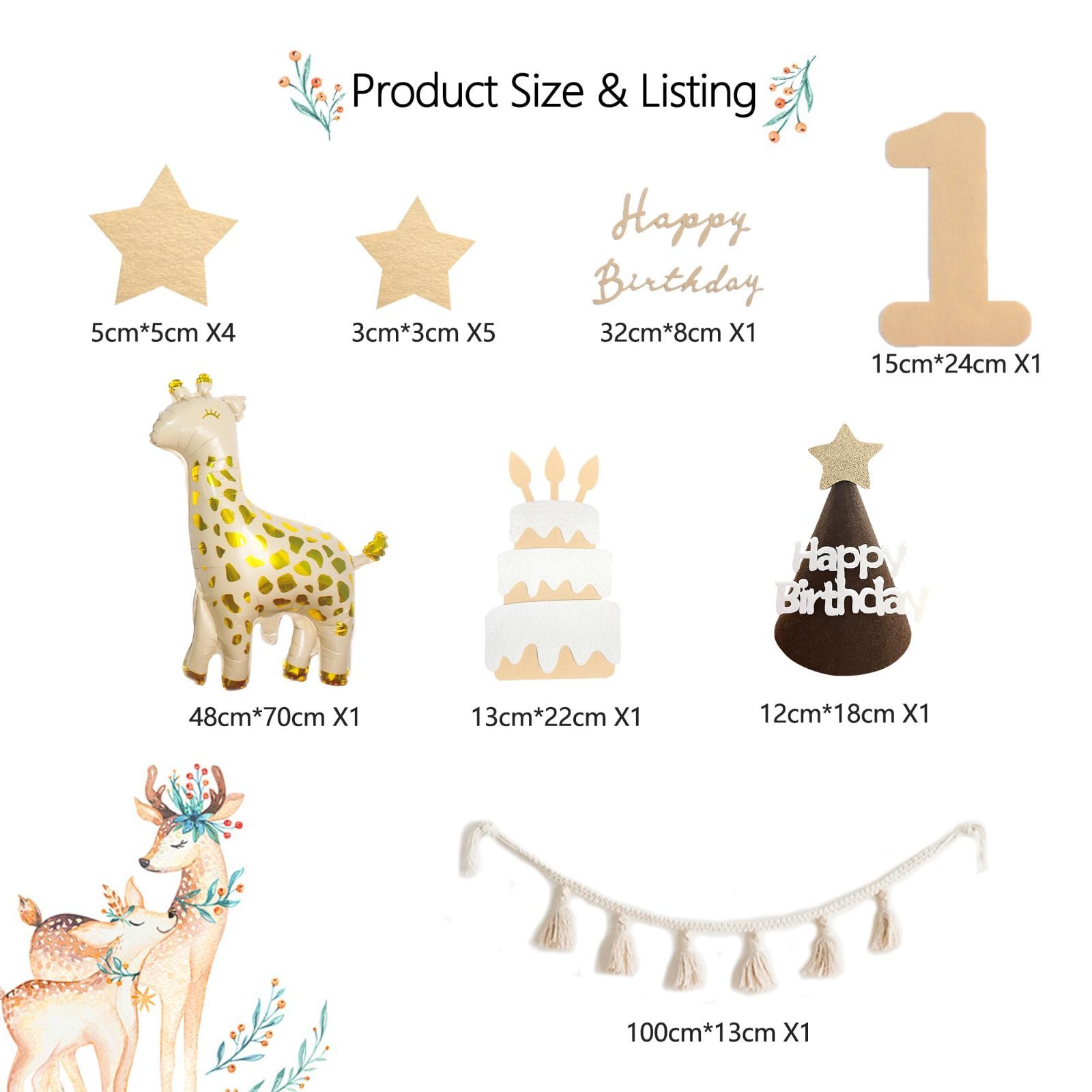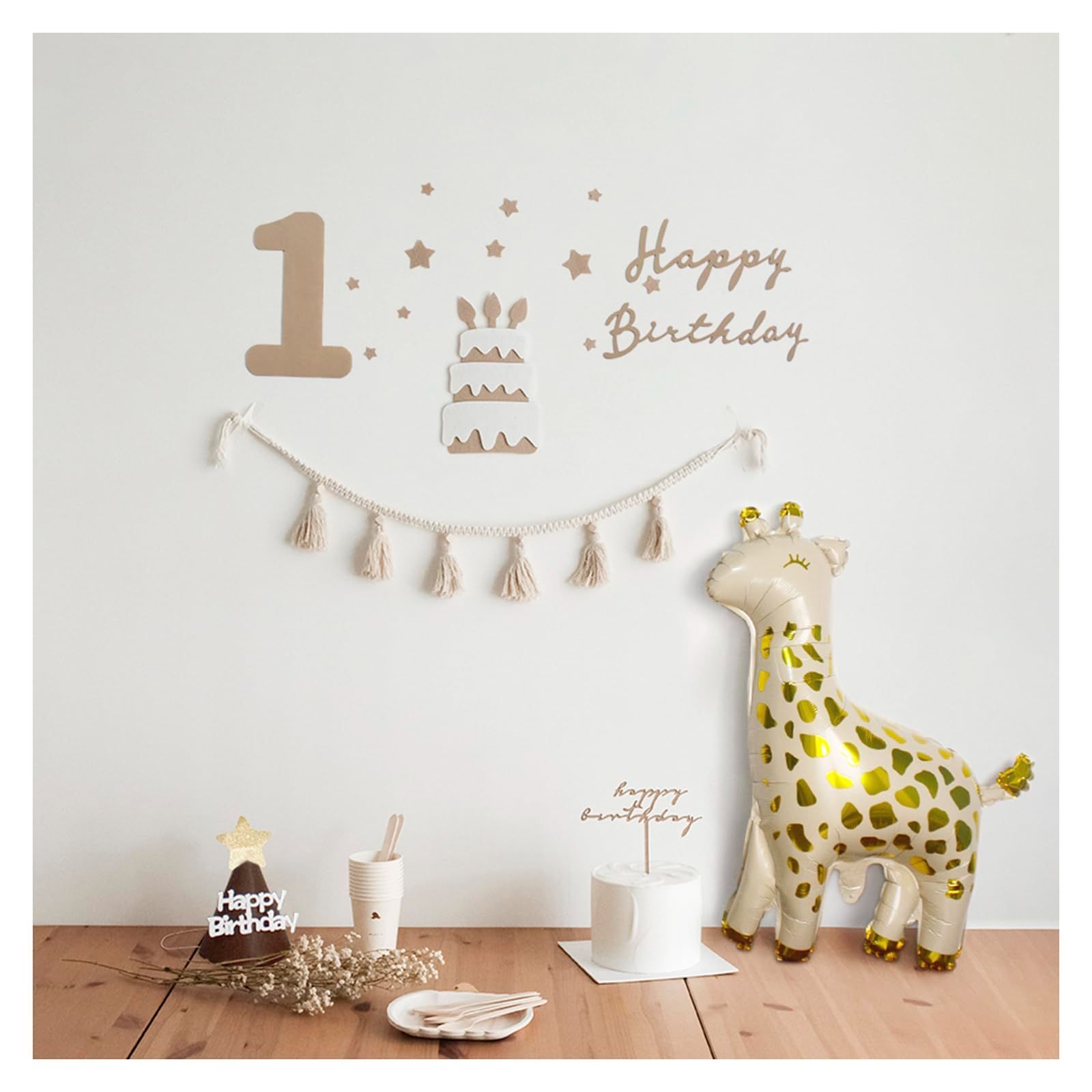 この可愛らしいバースデーデコレーションセットは、子供の誕生日パーティーを華やかに彩ります。キリン バルーン、ケーキトッパー、タッセル タペストリー、誕生日ケーキ 飾り 誕生日 飾り 。壁に星型のフェルト飾りを貼れば、夢のような雰囲気が演出できます。写真映えする背景で、子供の笑顔を残しましょう。手作り感のある温かみのある装飾品で、特別な1日を祝福しましょう。
