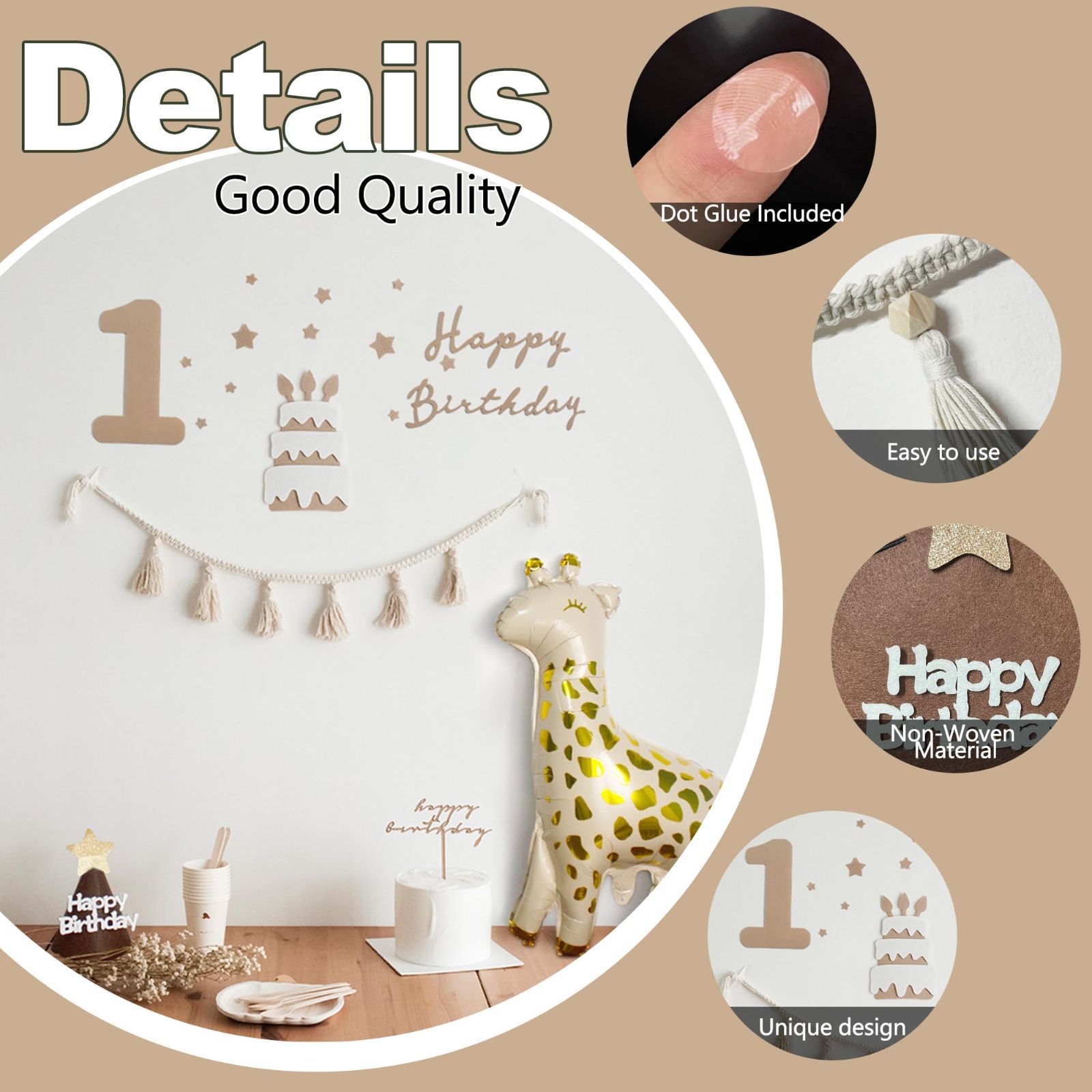 ハッピーバースデー 飾り フェルト布 ハーフバースデー 女の子 男の子 happy half birthday キリン バルーン、ケーキトッパー、タッセル タペストリー、誕生日ケーキ 飾り 誕生日 飾り 大人 写真背景 子供 飾り お祝い Birthday Party Decorations (1 Happy Birthday)