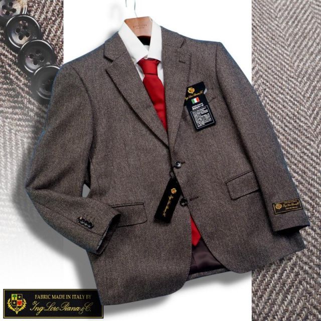 商品名:新品9.6万円 大手百貨店扱い 秋冬『Loro Piana ロロピアーナ DREAM TWEED 伊製生地』ヘリンボーン ツイード ジャケットBB5茶(E) 3052090