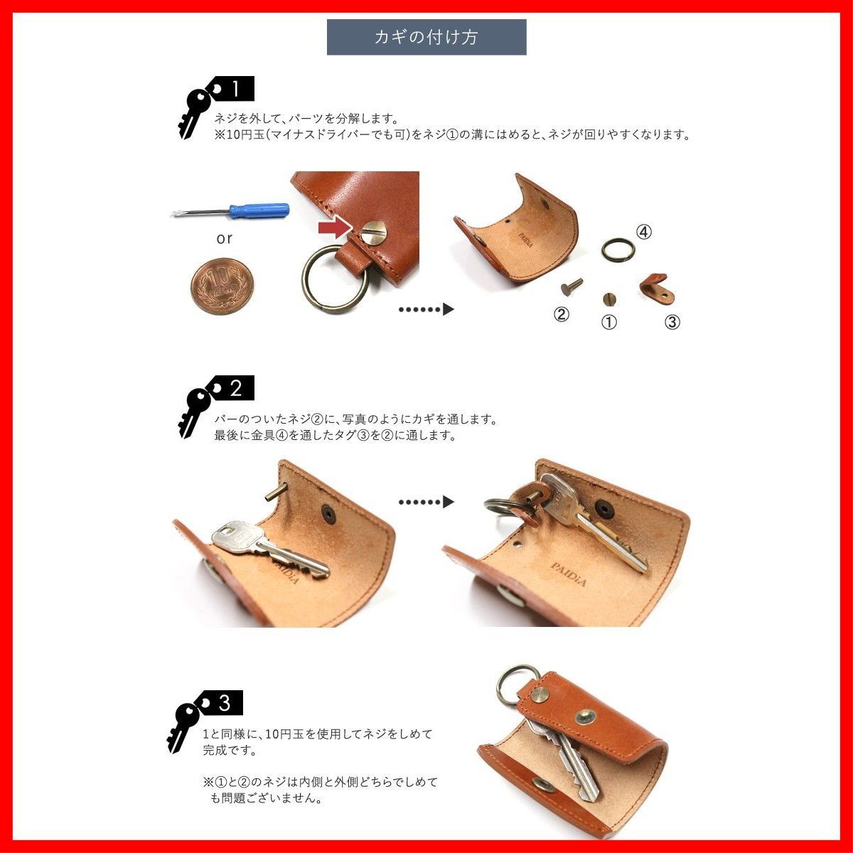[PAIDiA] キーケース レザー 本革 革 コンパクト スリム スマート ミニ 小さい レディース メンズ キーケース 本革 革 レザー ヌメ革 レッド ネイビー ブラウン ブラック キーケース ブランド キーケース メンズ