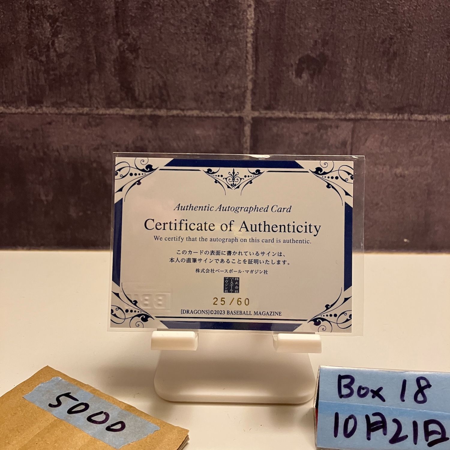 2023 BBM 鵜飼航丞 25/60 直筆サインカード 中日ドラゴンズ Blue