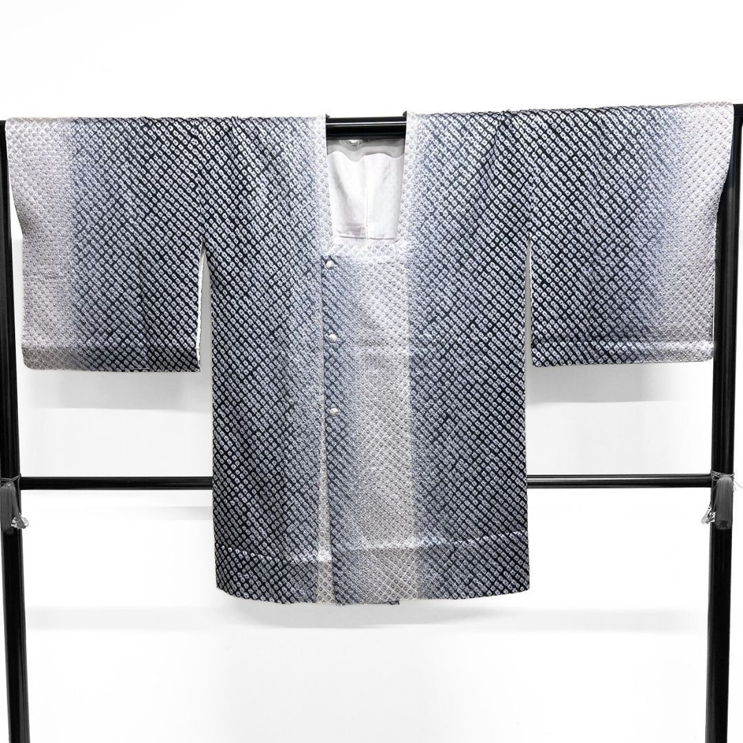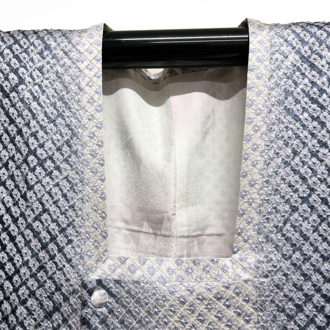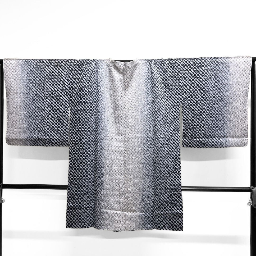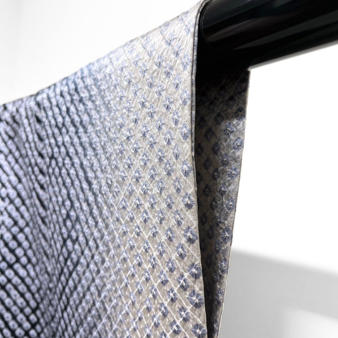 縦縞に藍のグラデーションと絞りの鹿の子が美しい一着です。