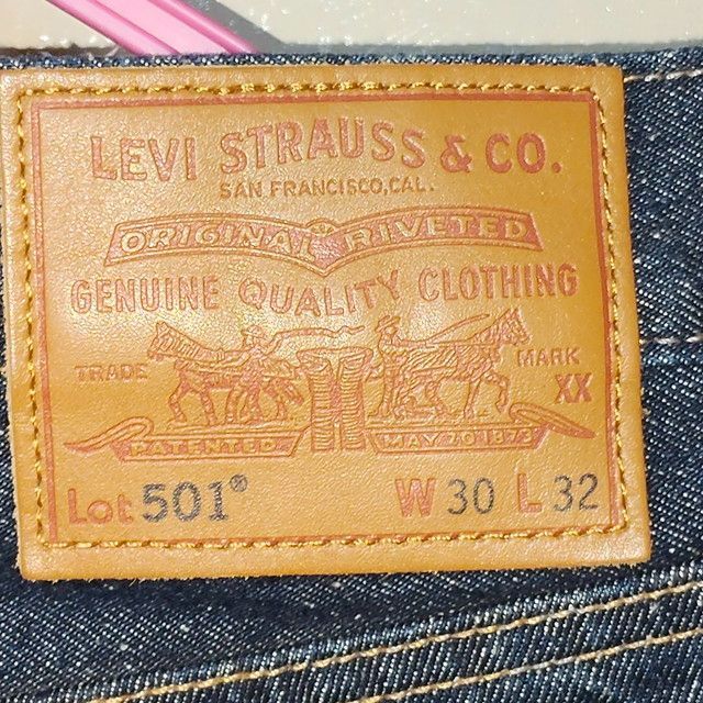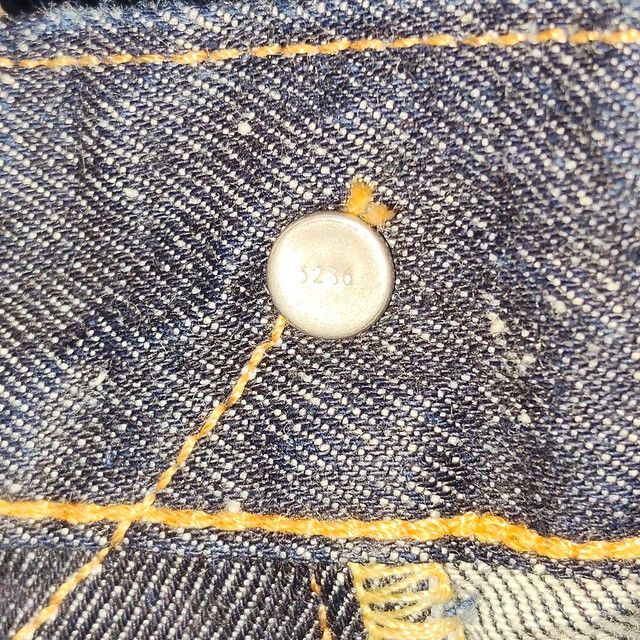 特徴...赤タブ、ビッグE、革パッチ、チェーンステッチ