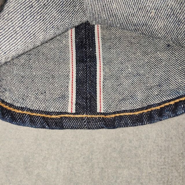 デニム生地には伝統的なシャトル織機で織り上げられた、赤耳セルビッジデニムを使用。