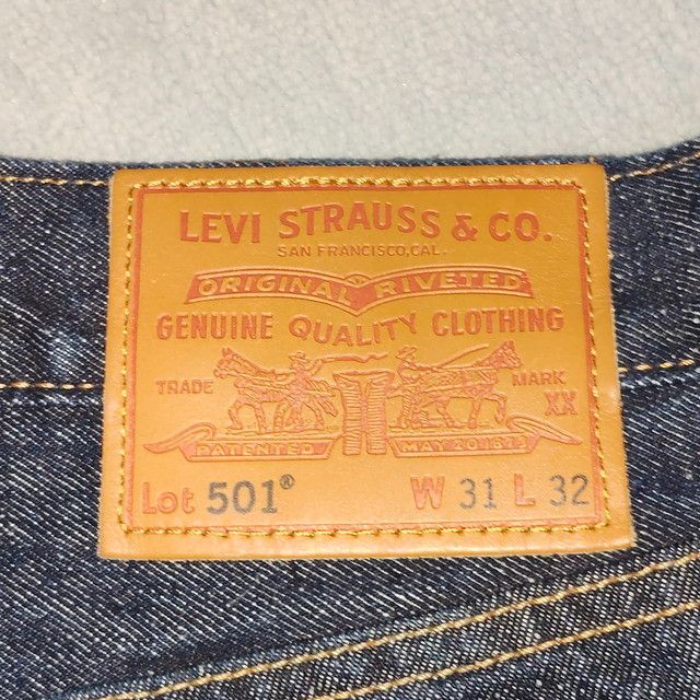 特徴...赤タブ、ビッグE、革パッチ、チェーンステッチ