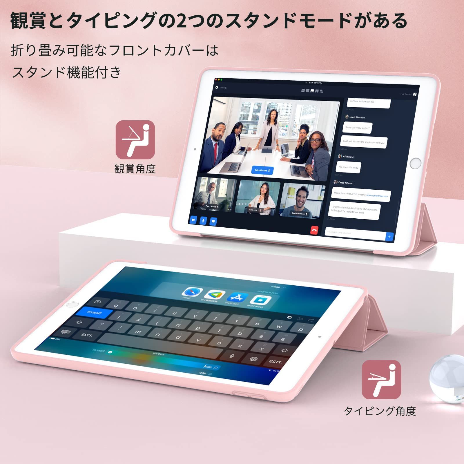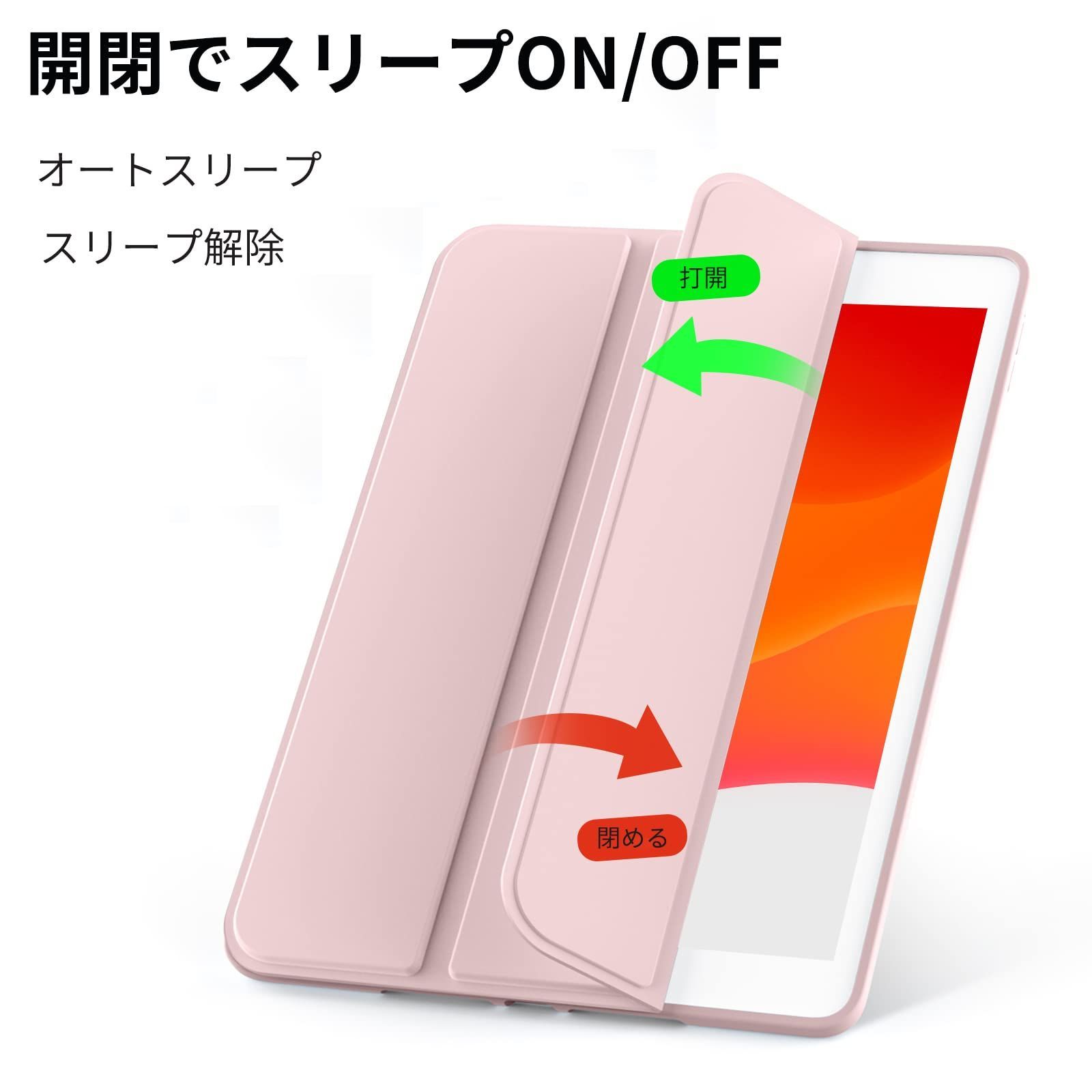 KenKe iPad 10.2インチ 2021/2020/2019 ケース 超軽量 薄型 柔らかいシリコン TPU材質 iPad 9 カバー 傷つけ防止 耐衝撃 3段階折り畳み可 スタンド マグネット付き 自動スリープ機能 iPad 第9世代/第8世代/第7世代 に対応 (ピンク)