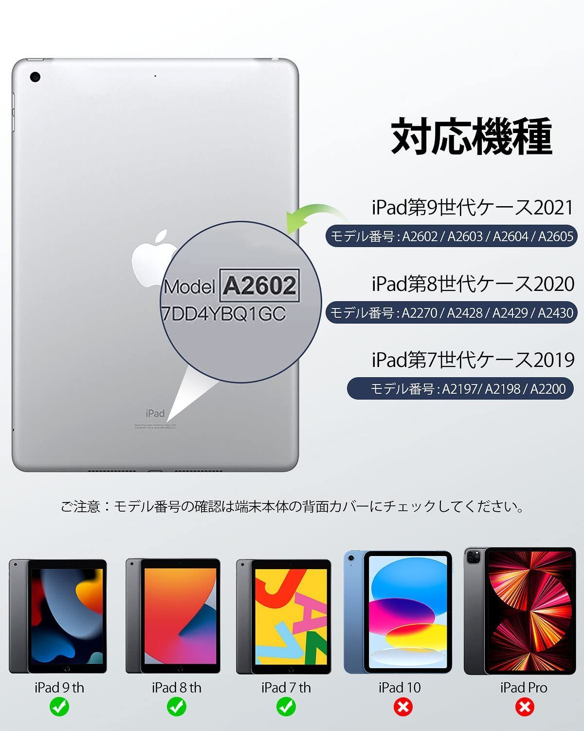 【対応機種】 iPad 10.2インチ 第9世代 2021(モデル番号:A2602/A2603/A2604/A2605)、iPad 10.2インチ 第8世代 2020 (モデル番号:A2270/A2428/A2429/A2430)、iPad 10.2インチ 第7世代 2019 (モデル番号:A2197 / A2198 / A2200) 専用スマートケース。他のiPadモデルと互換性がなく、ご注意くださいね。