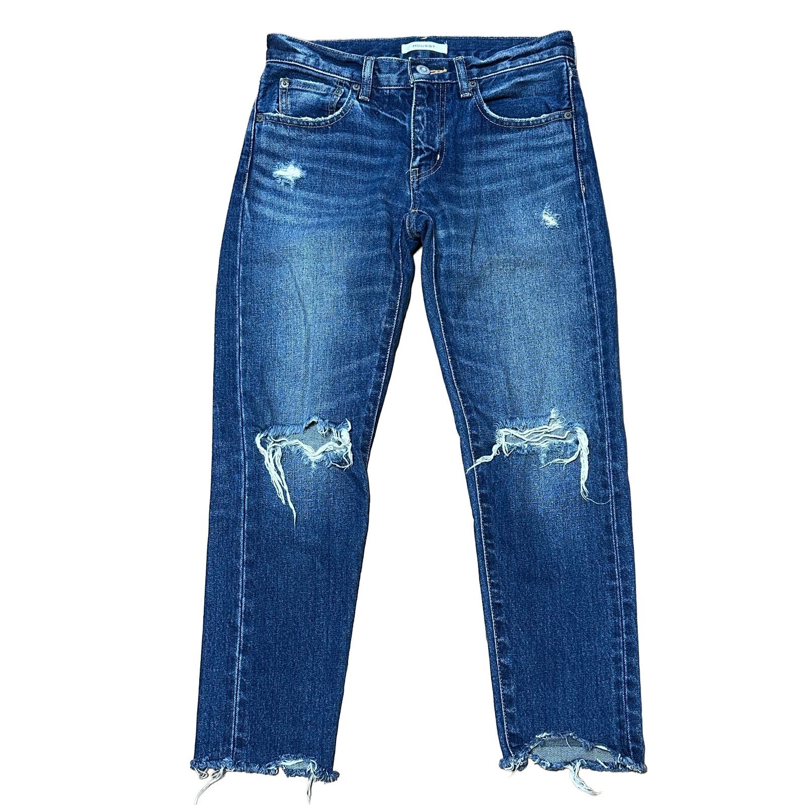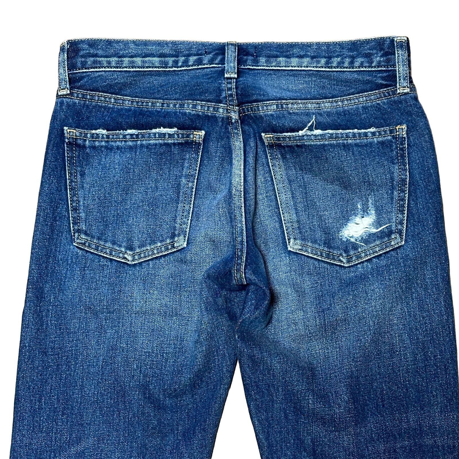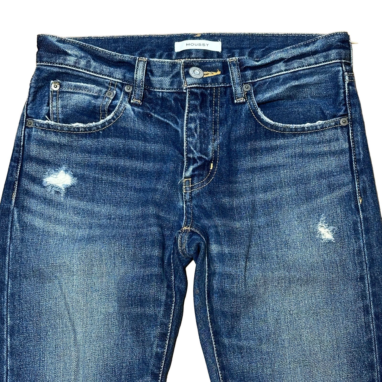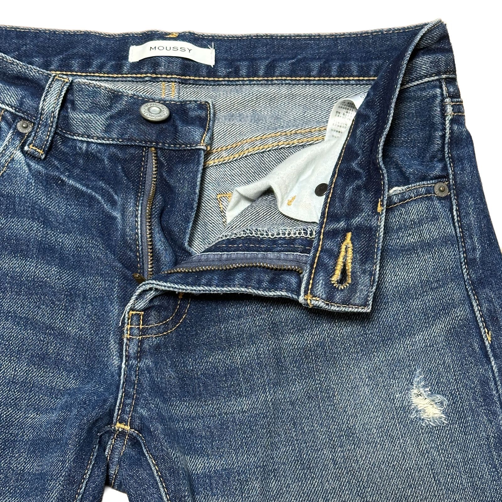 商品 : MOUSSY クラッシュ クロップド ボーイフレンドデニム ルーズテーパード インディゴ サイズ25 レディースS マウジー