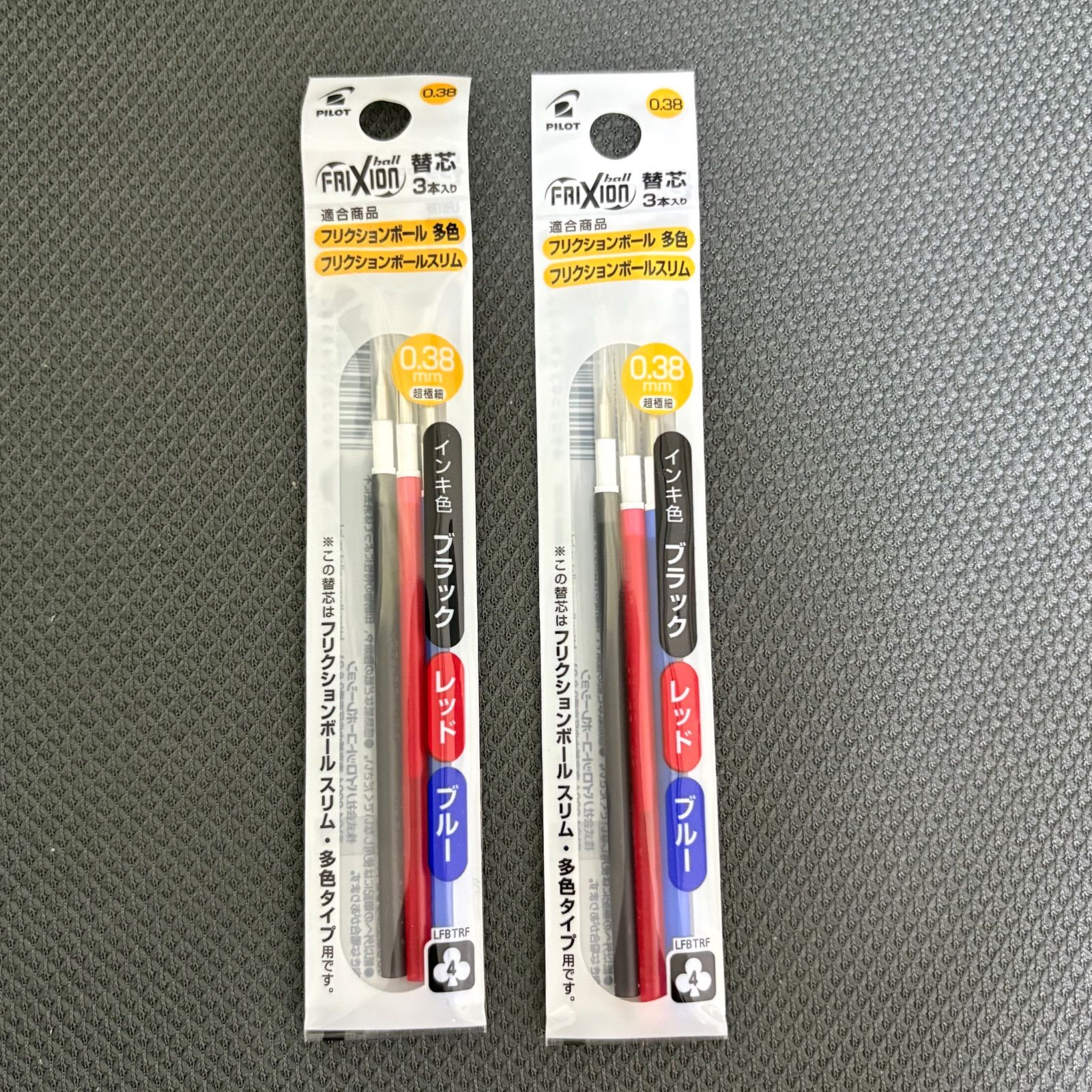 パイロット フリクションボール用の替芯セットです。細字0.38mm、ブラック・レッド・ブルーの3色入り。多色タイプ・フリクションボールスリム対応。書いて消せるフリクションインキで、手帳やノート、事務作業に便利。未使用・未開封品です。