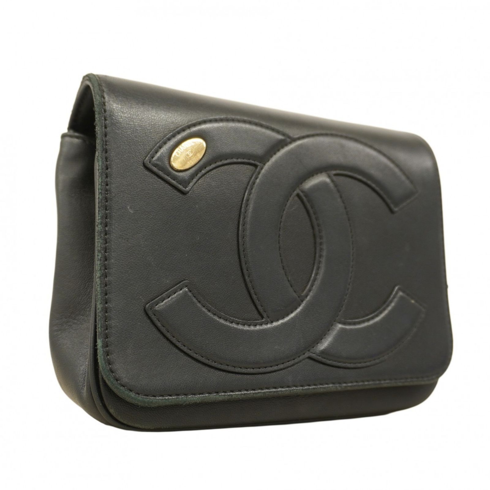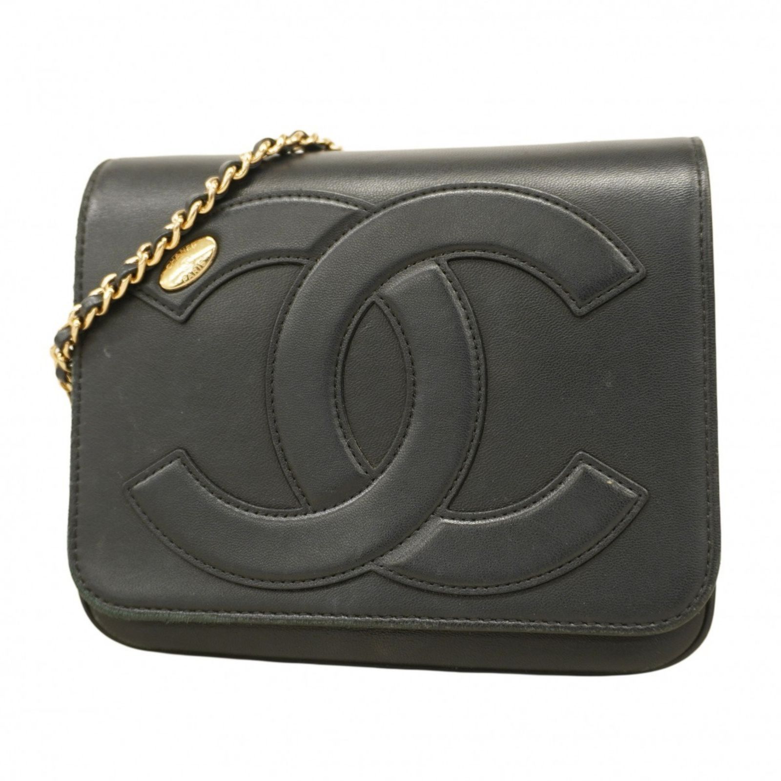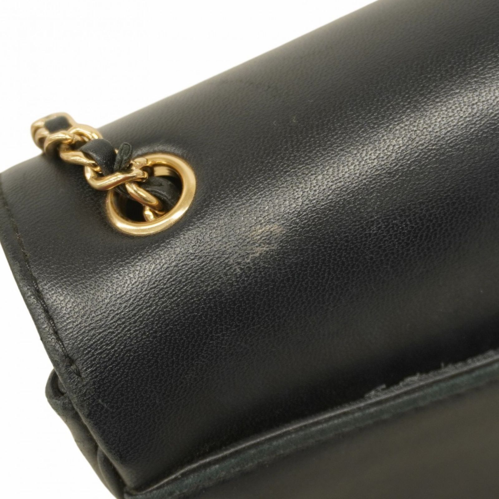 シャネル(Chanel) シャネル ショルダーバッグ Wチェーン ラムスキン ブラック レディース