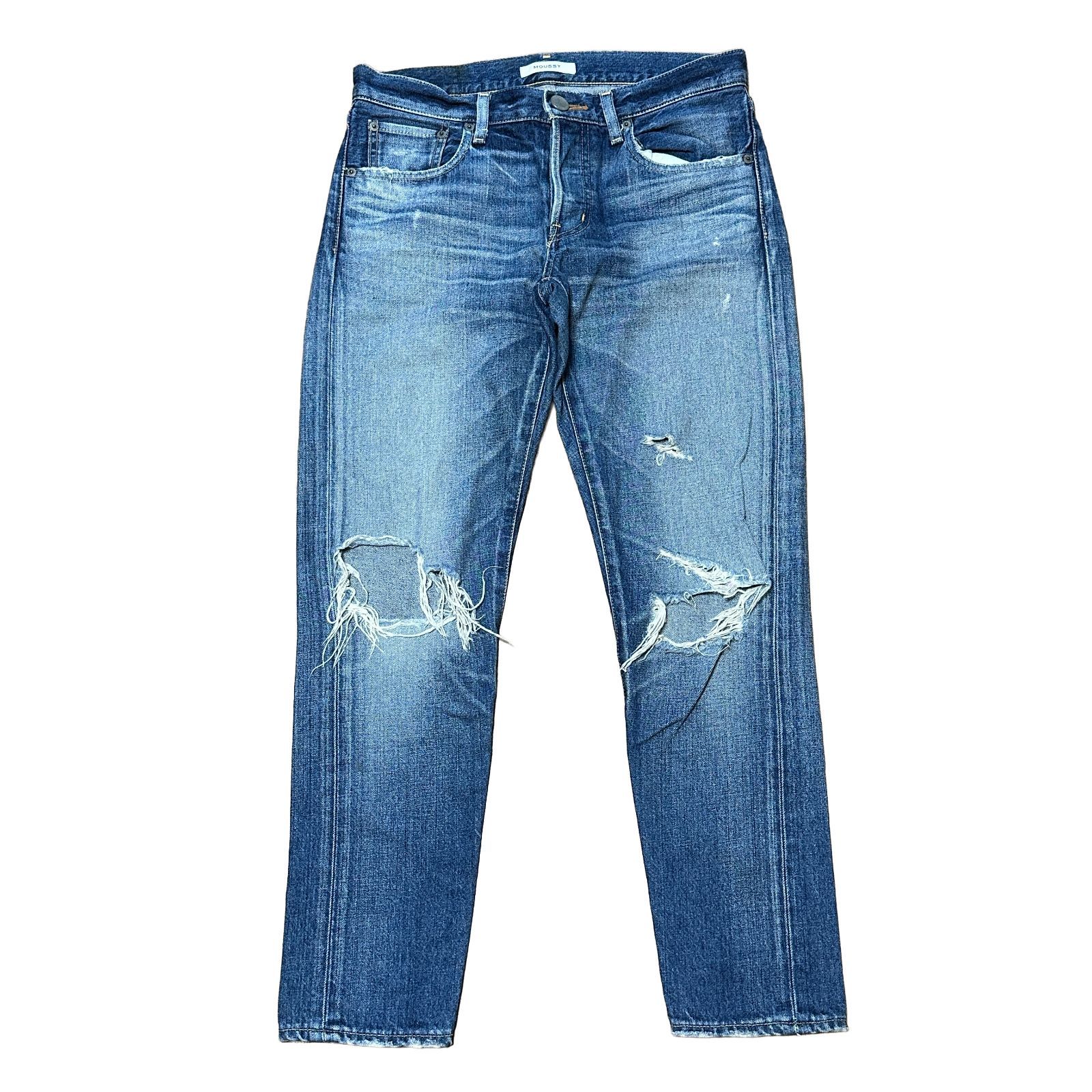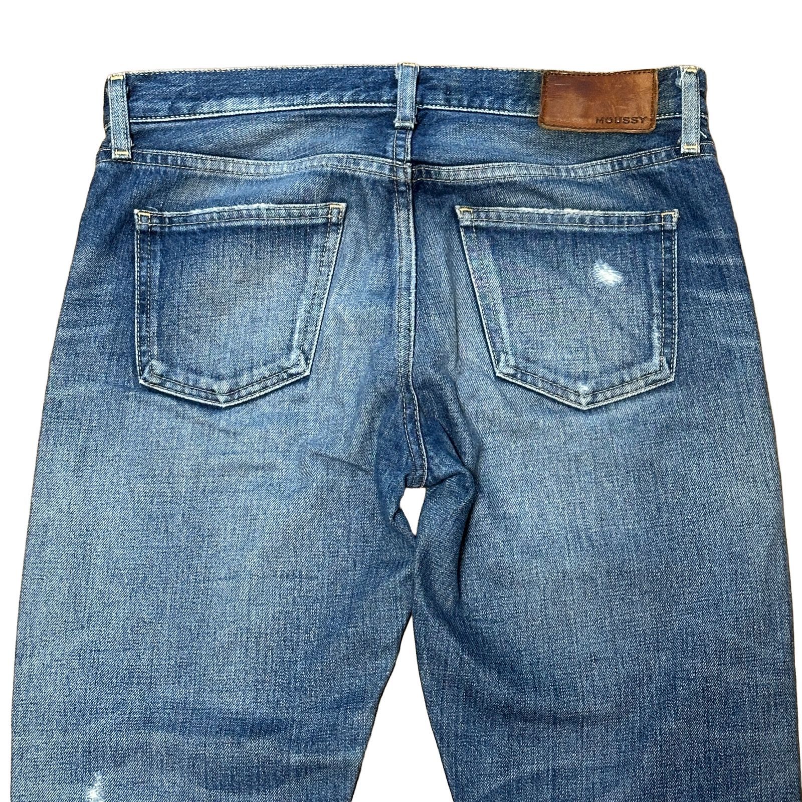 商品 : MOUSSY 日本製 クラッシュ ルーズ テーパード ボーイフレンドデニム ブルー サイズ27 レディースL マウジー