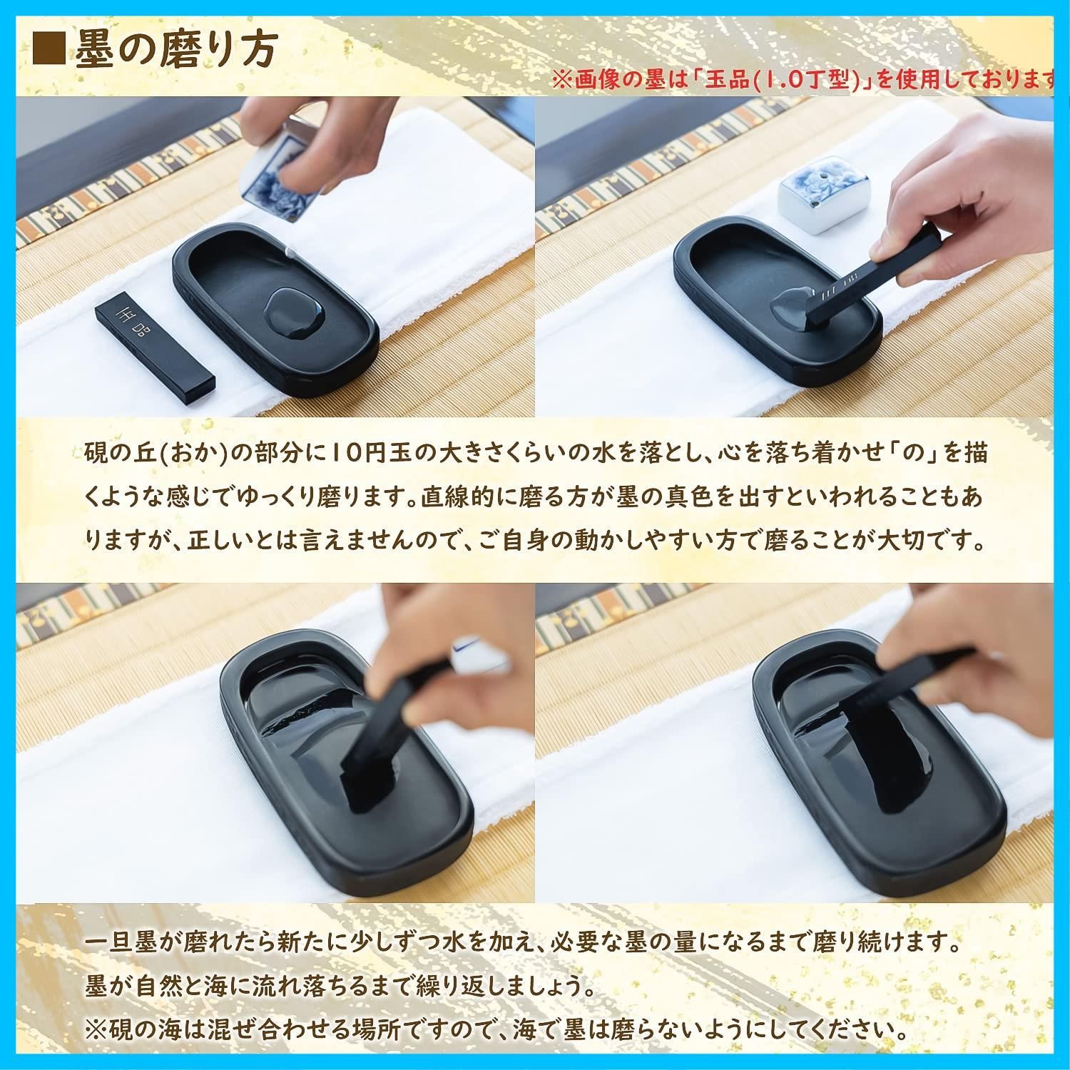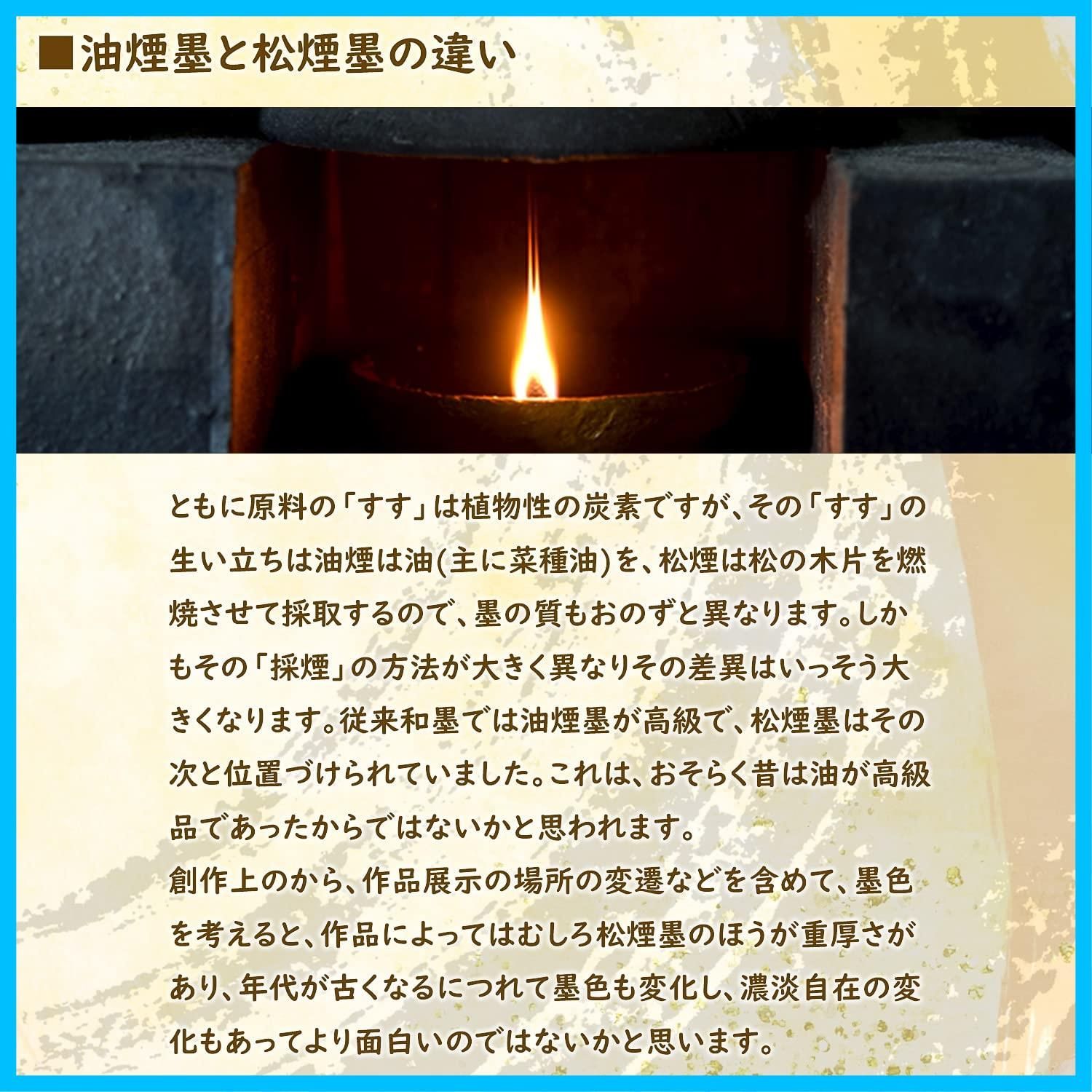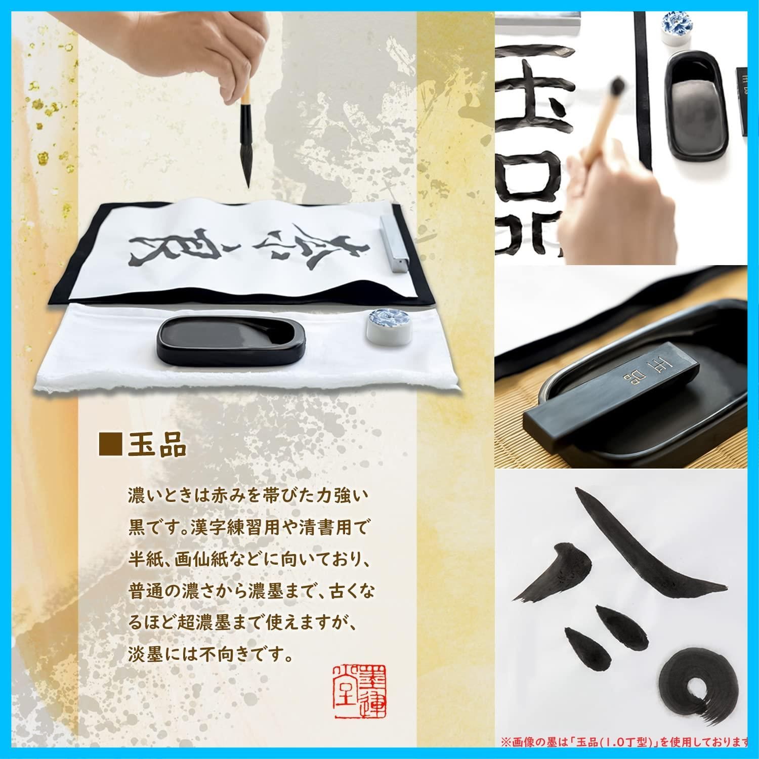 玉品漢字練習用、清書用で半紙、画仙紙向き。普通の濃さから濃墨まで、古くなるほど超濃墨まで使えるが、淡墨には不向き。作品用には陳玄の試用を推奨