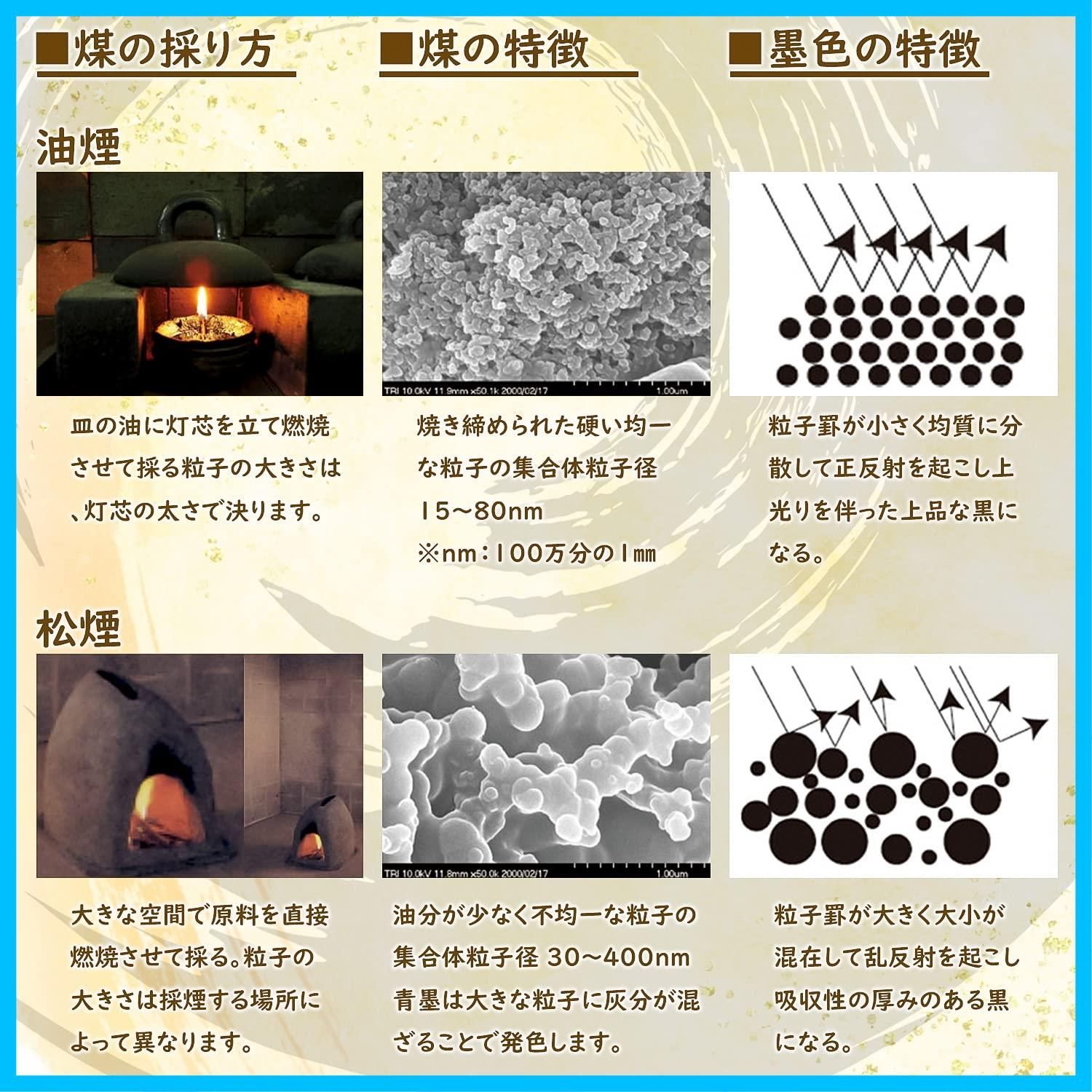 普通の濃さから濃墨まで、古くなるほど超濃墨まで使えるが、淡墨には不向き。