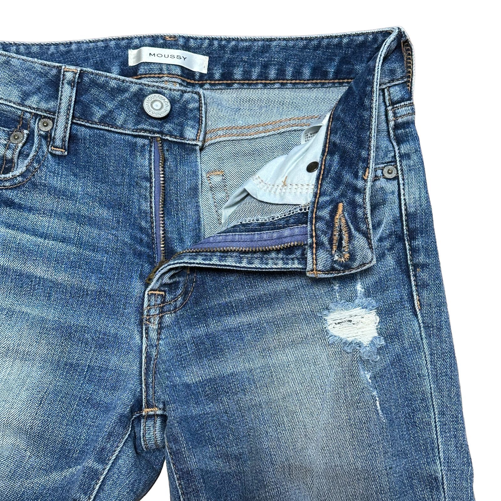 商品 : MOUSSY JUST WAIST CROPPED SKINNY クロップド スキニーデニム ダメージ加工 サイズ24 レディースXS マウジー