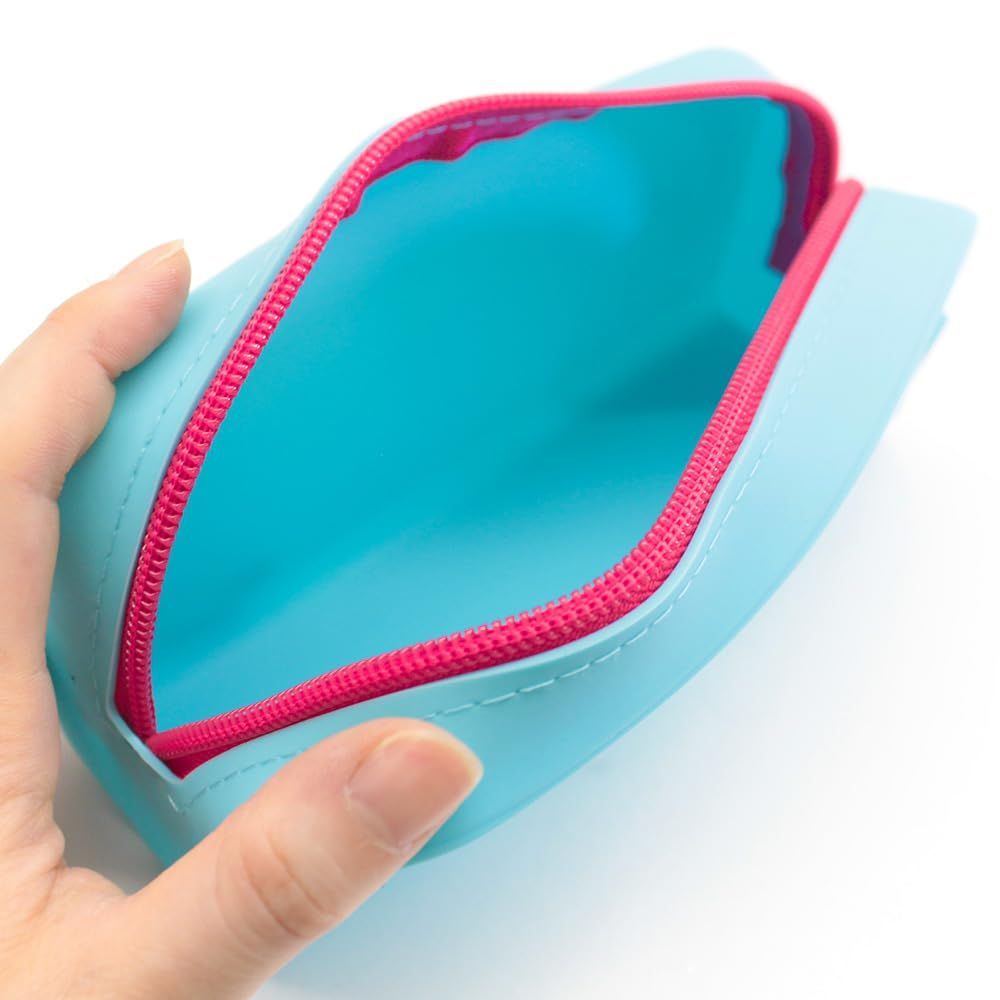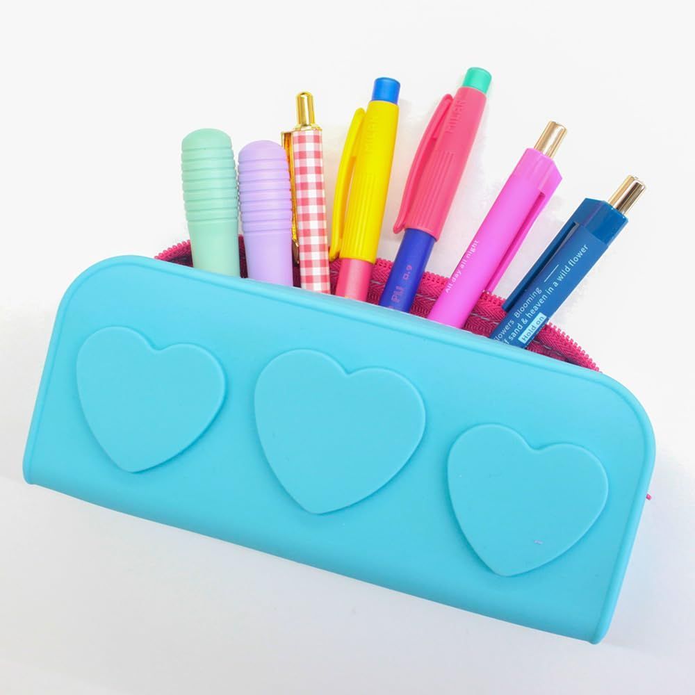 立体的なハートと鮮やかなバイカラーが可愛いペンケース。シリコンタイプでやわらかく、口が大きく開くので出し入れしやすいです。