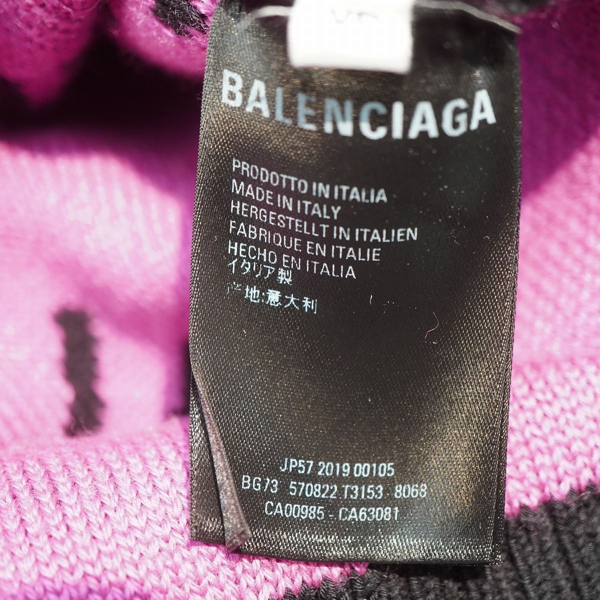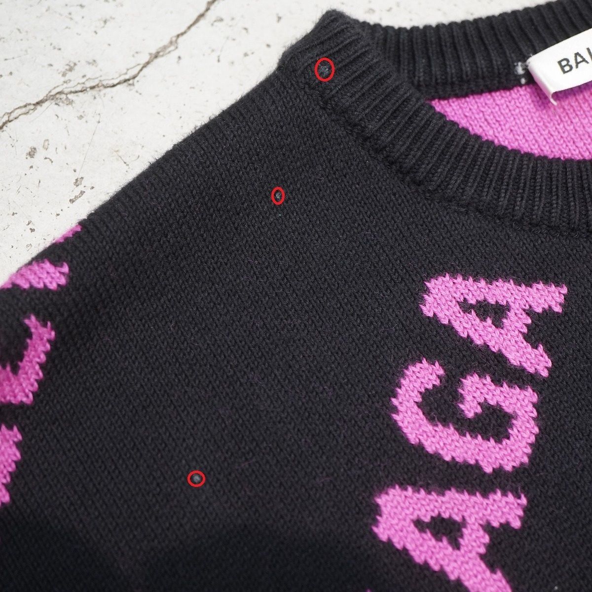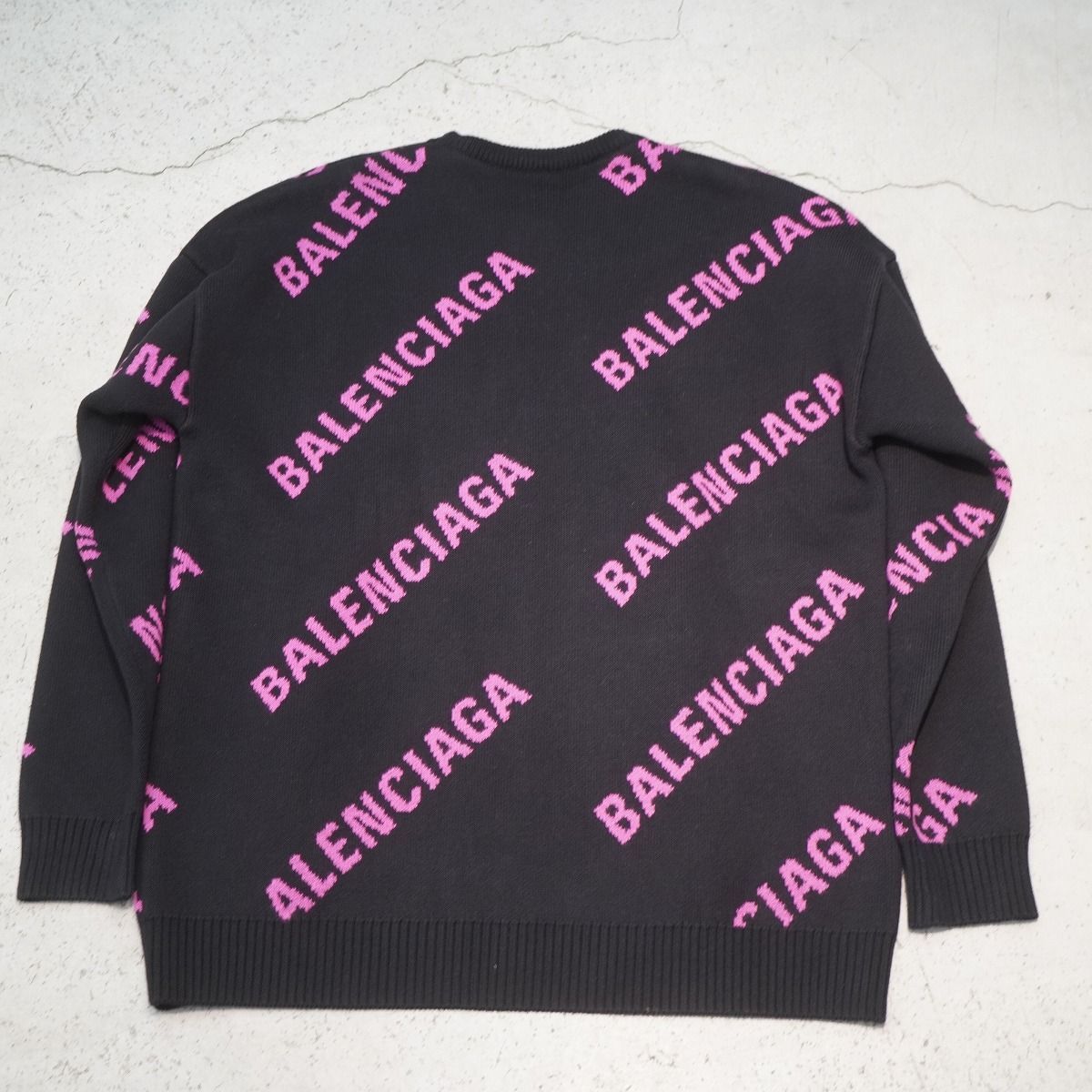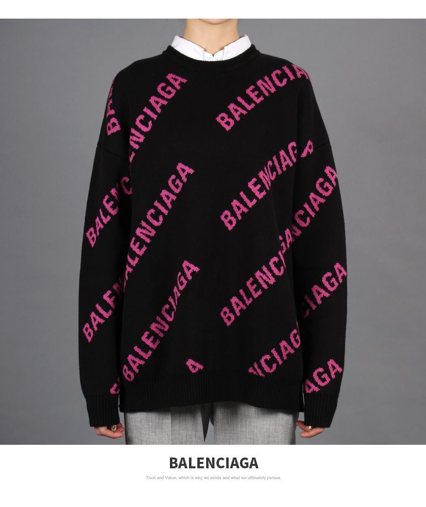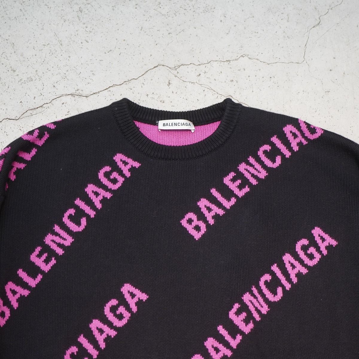 正規 19SS BALENCIAGA バレンシアガ Embroidered Logo Oversized Sweater 総柄 ロゴ ジャガード ニット セーター オーバーサイズ 黒 ピンク XS 570822 T3153 本物 です。