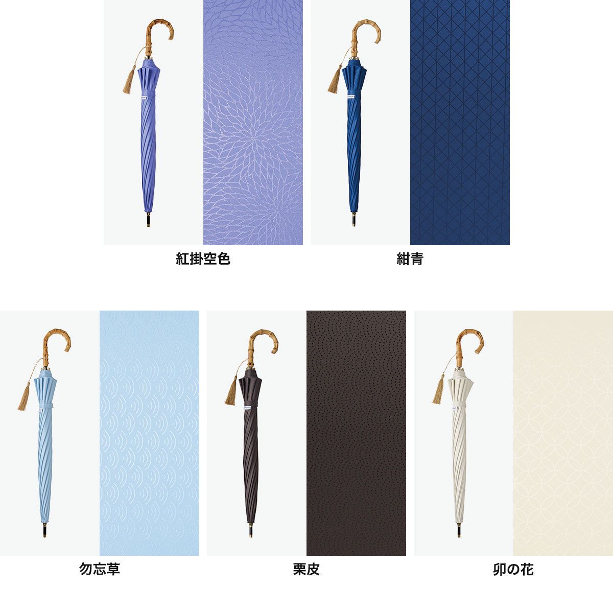 江戸小紋をイメージした、吉祥柄の江戸シリーズの長傘。親骨12本の多骨構造で正円に近く、より日差しをシャットアウト。遮光率・UVカット率ともに100%を備えています。柔らかな雰囲気とスリムな形状で、持つだけで軽やかな雰囲気を醸し出します。