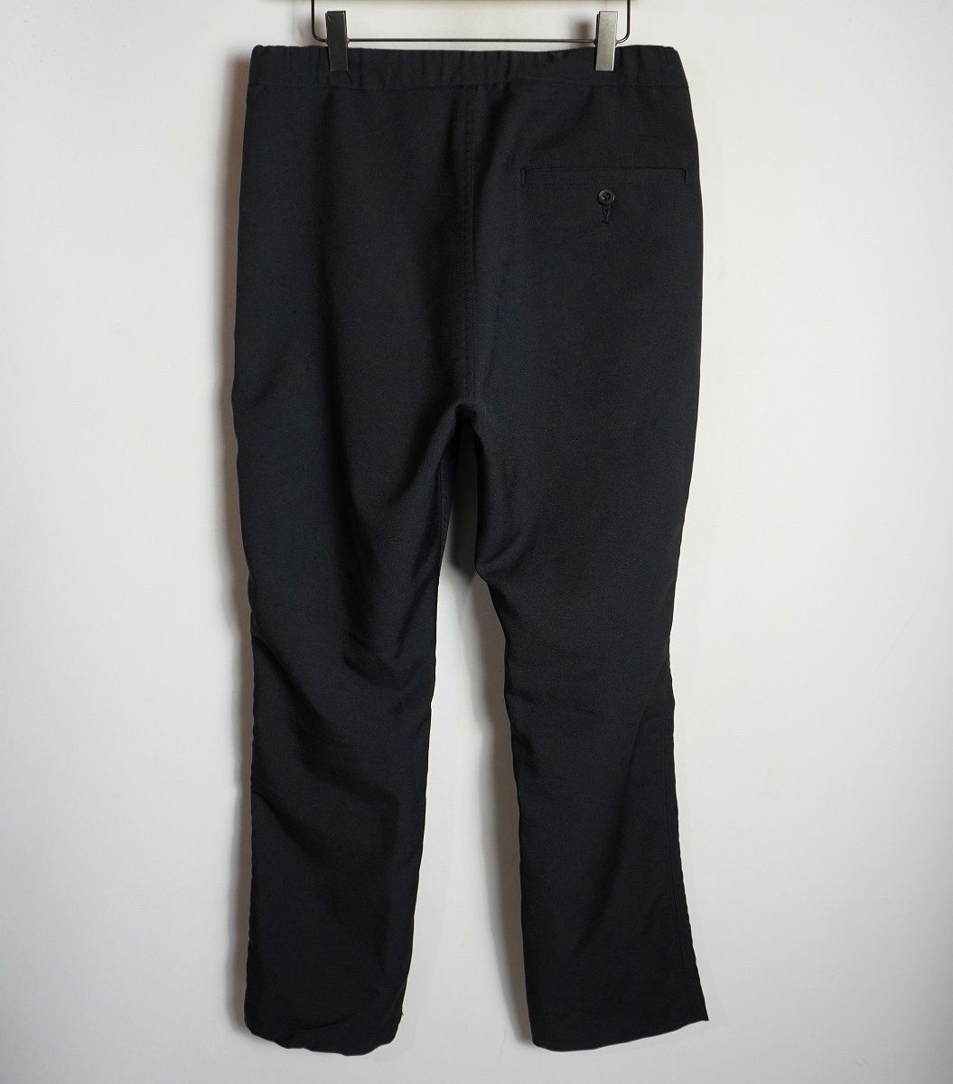 上品な光沢感とドライな肌触りが特徴のポリエステルツイル素材を使用したイージートラウザーです。