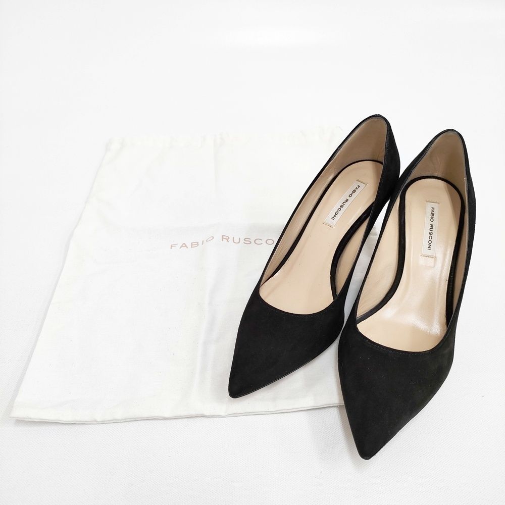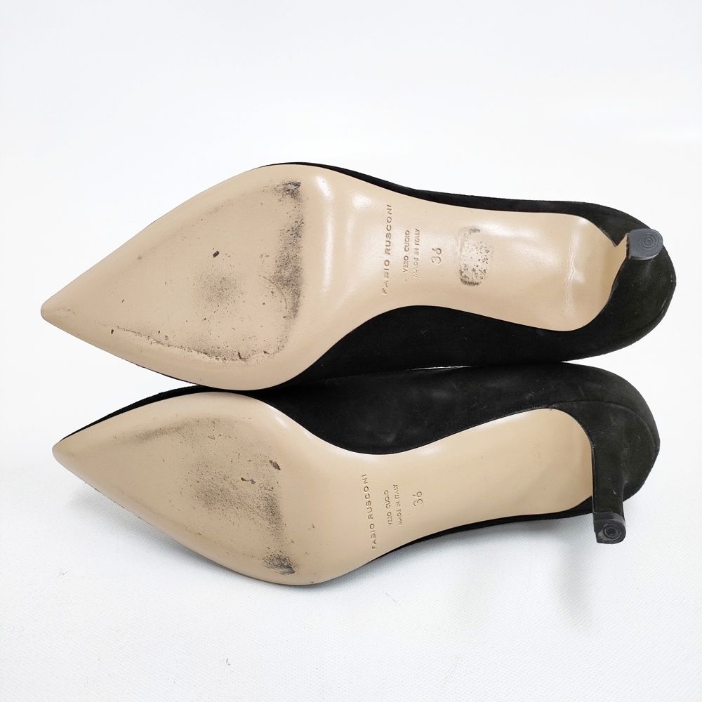 5-1203G◎FABIO RUSCONI スウェードパンプス ヒール サイズ36 パンプス ブラック ファビオルスコーニ 258579