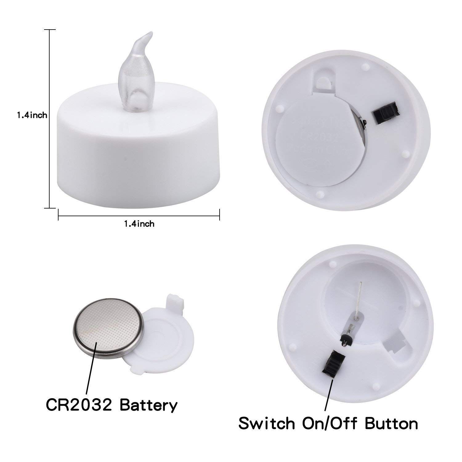 【仕様】材料:LED + PP ; サイズ:直径3.7cm 高さ3.2cm。電池で光るキャンドルライトは繰り返して利用できます。また、電池式で置き場所を選ばず、玄関や窓際、リビングテーブルの上、ベッドサイドなど、様々な場所で使えます