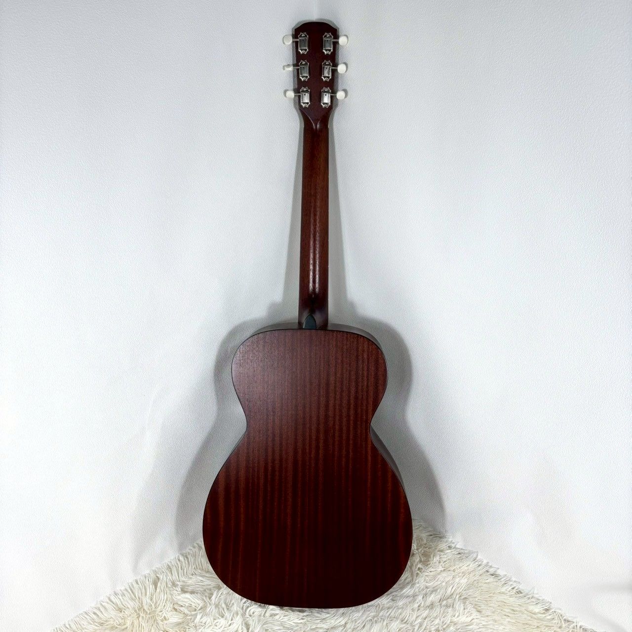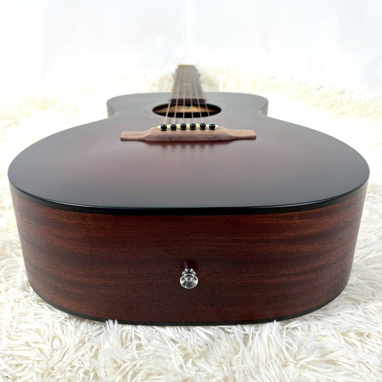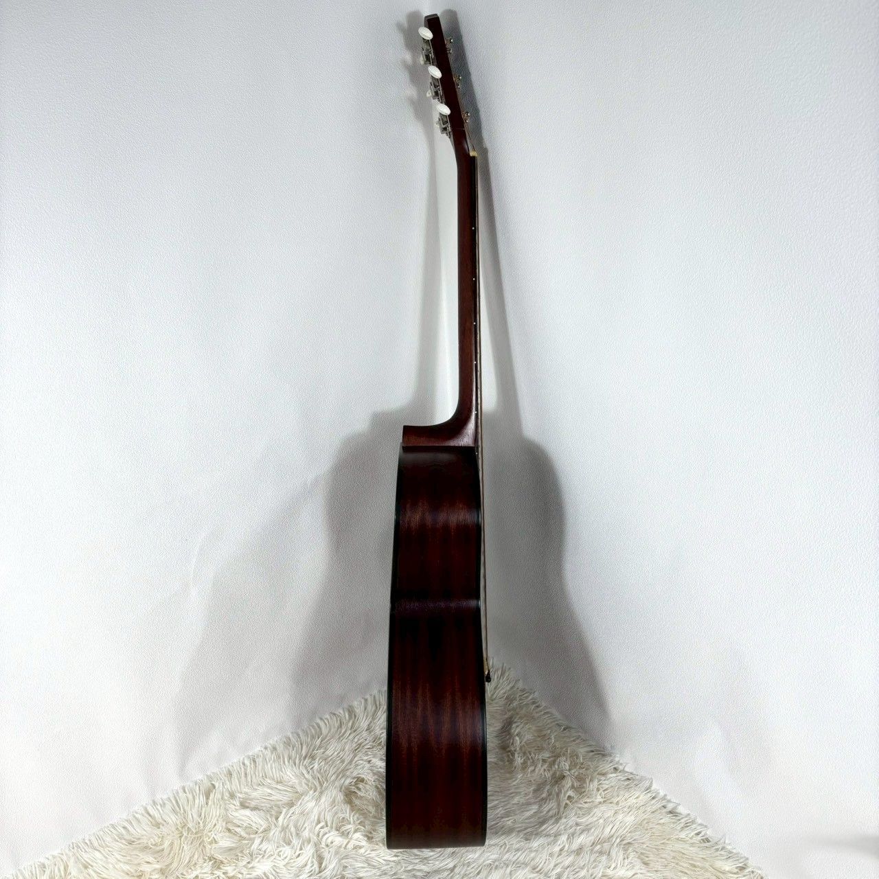 ボディトップはシダー単板、サイドとバックはサペリ、ネックはマホガニー、指板はローズウッドです。