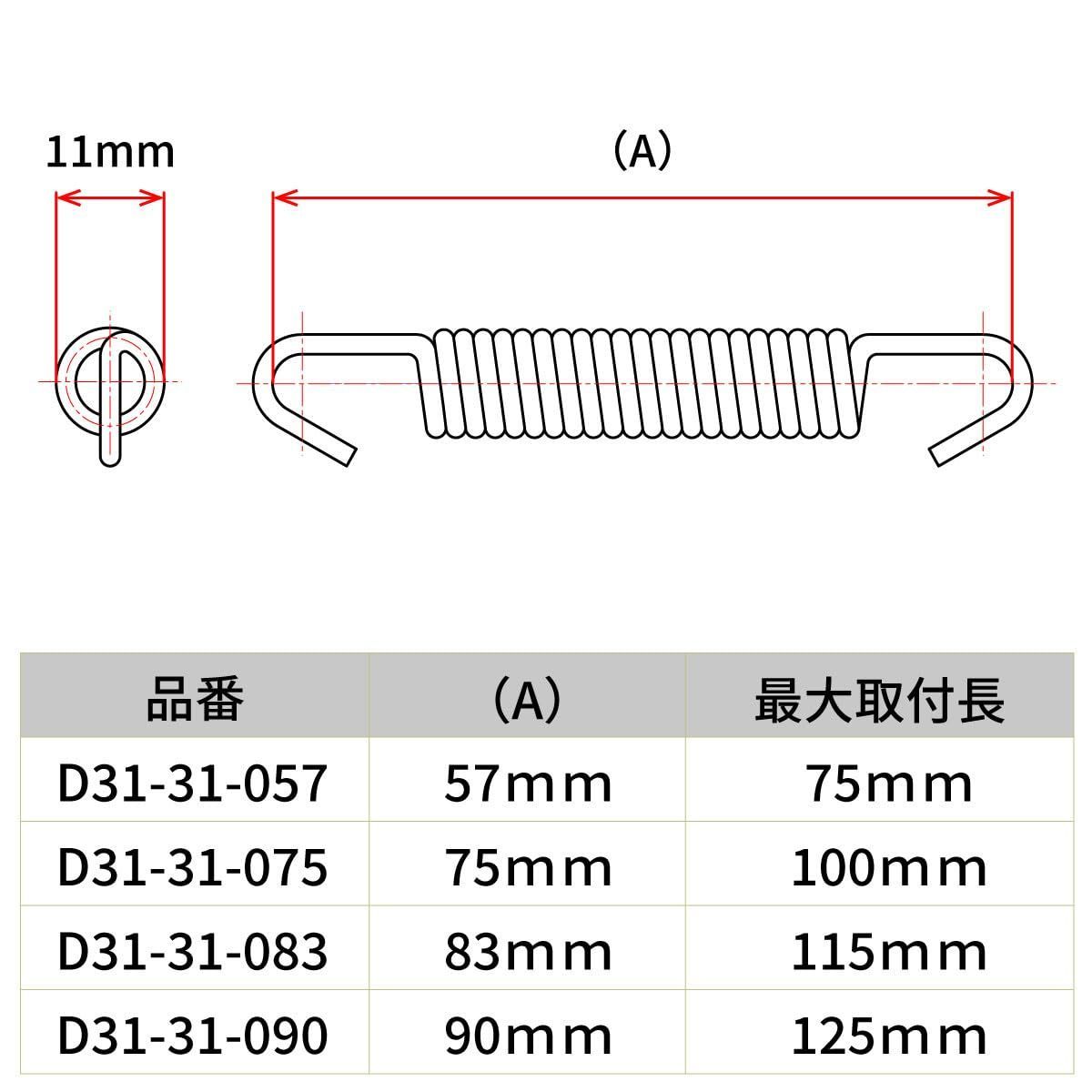 ディーアールシー(DRC) エキゾーストスプリング 90mm(最大取付け長125mm) ユニクロメッキ/防錆 5個入り ダートフリーク DIRTFREAK F3865(旧品番:D31-31-090)