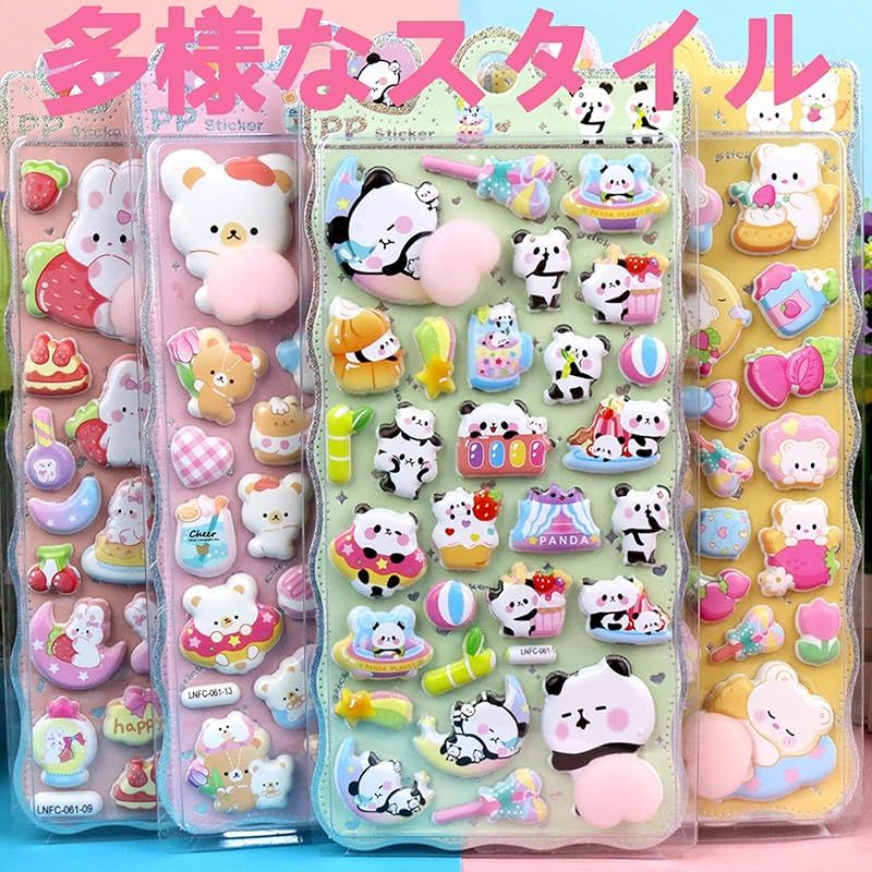 【個性的パンダ・ウサギ・クマデザイン】黒白の可愛いパンダ、長耳の優しいウサギ、「動物キャラクターシール」。それぞれの動物の特徴を活かしたデザインで、子供から大人まで見た瞬間に笑顔になれる、視覚と触覚の二重楽しみを提供。