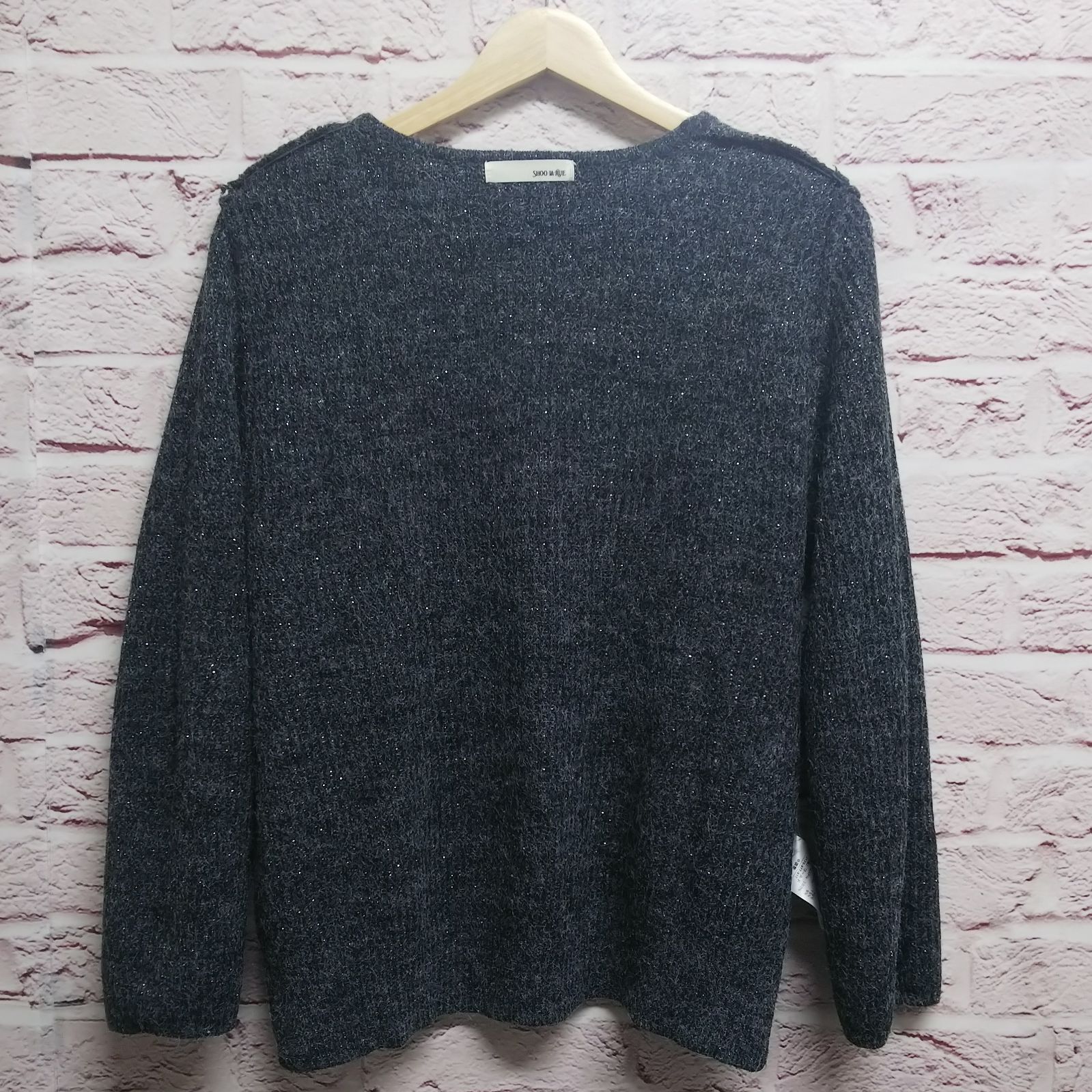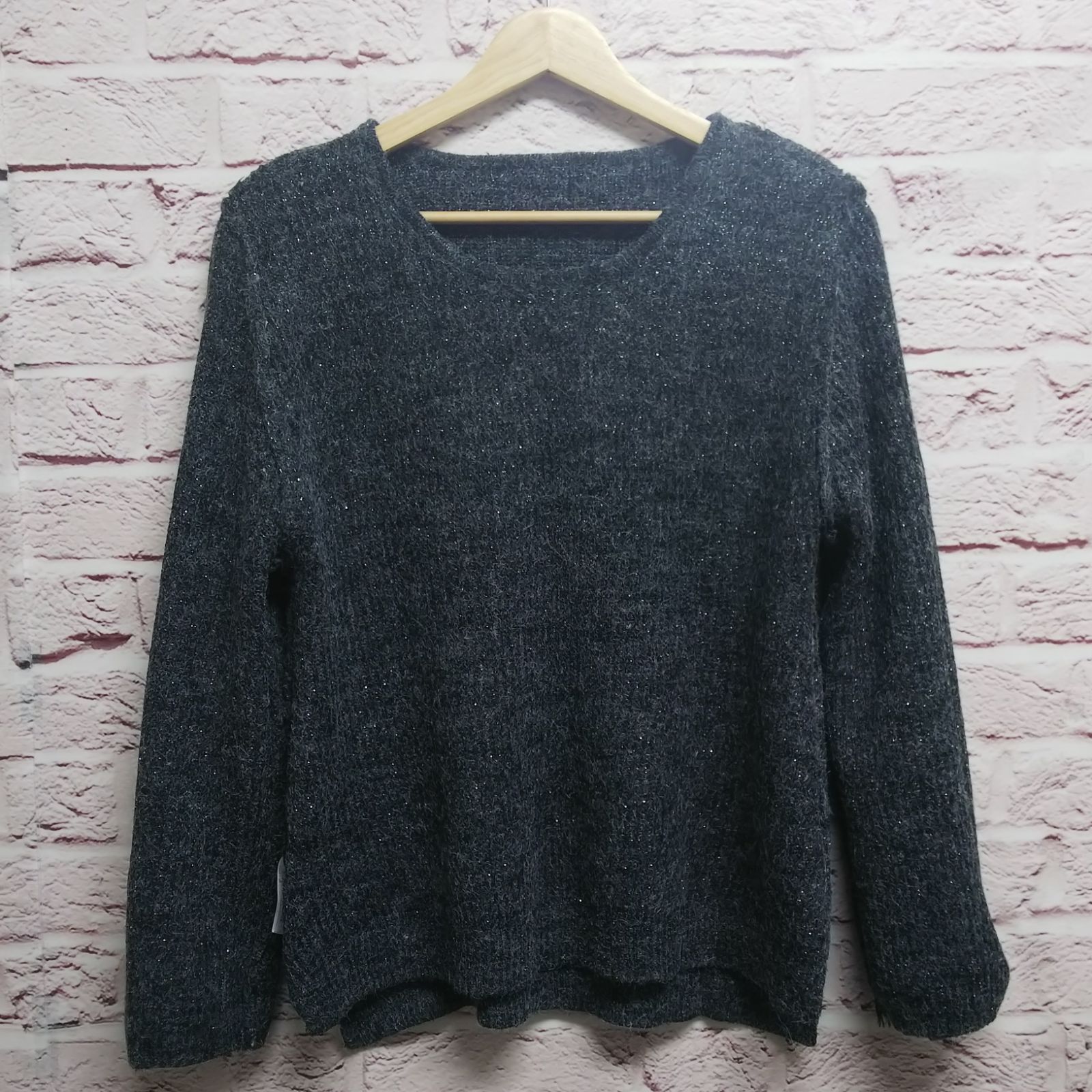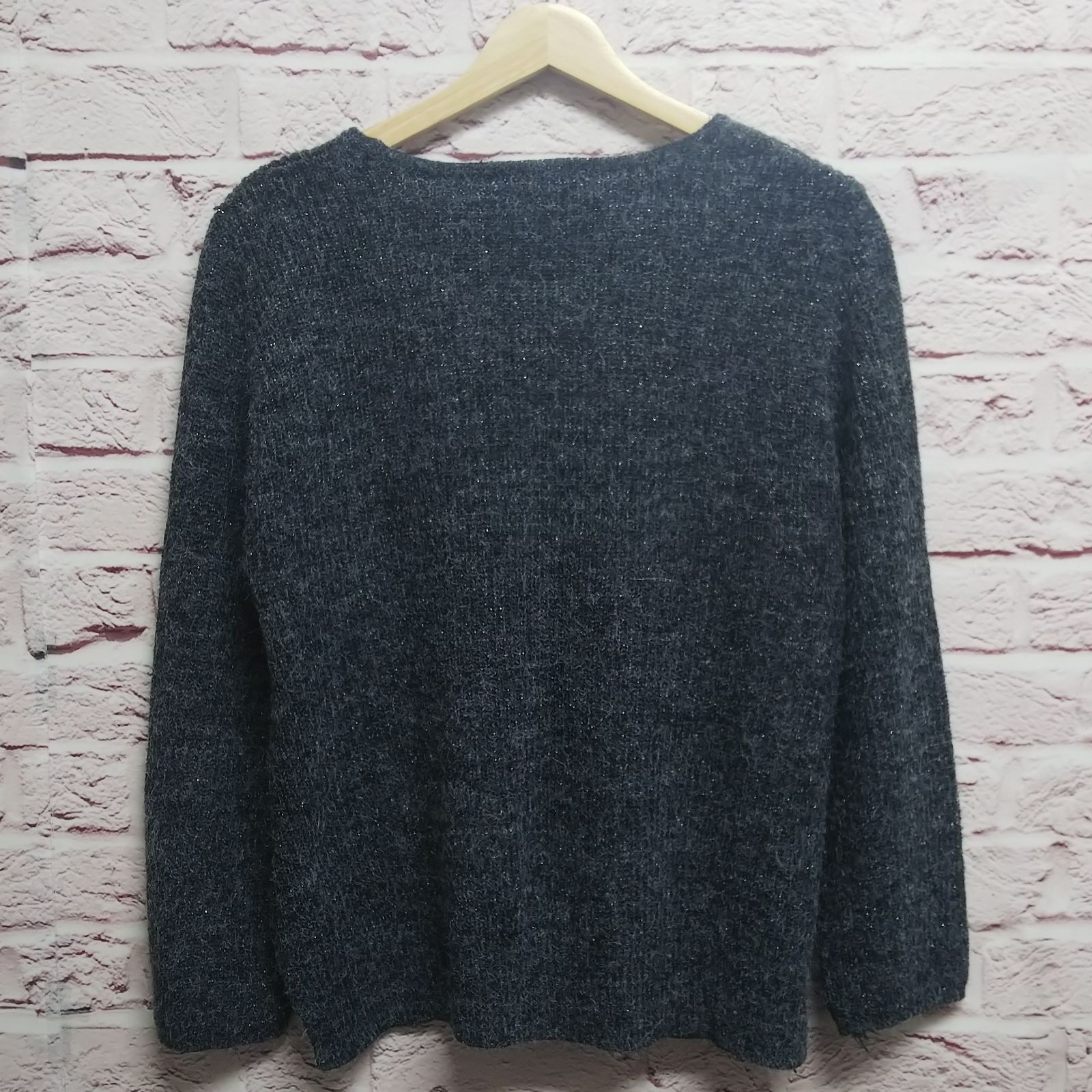 ラメ入りで、後ろ身頃の方が若干長めのデザインのセーターになります。