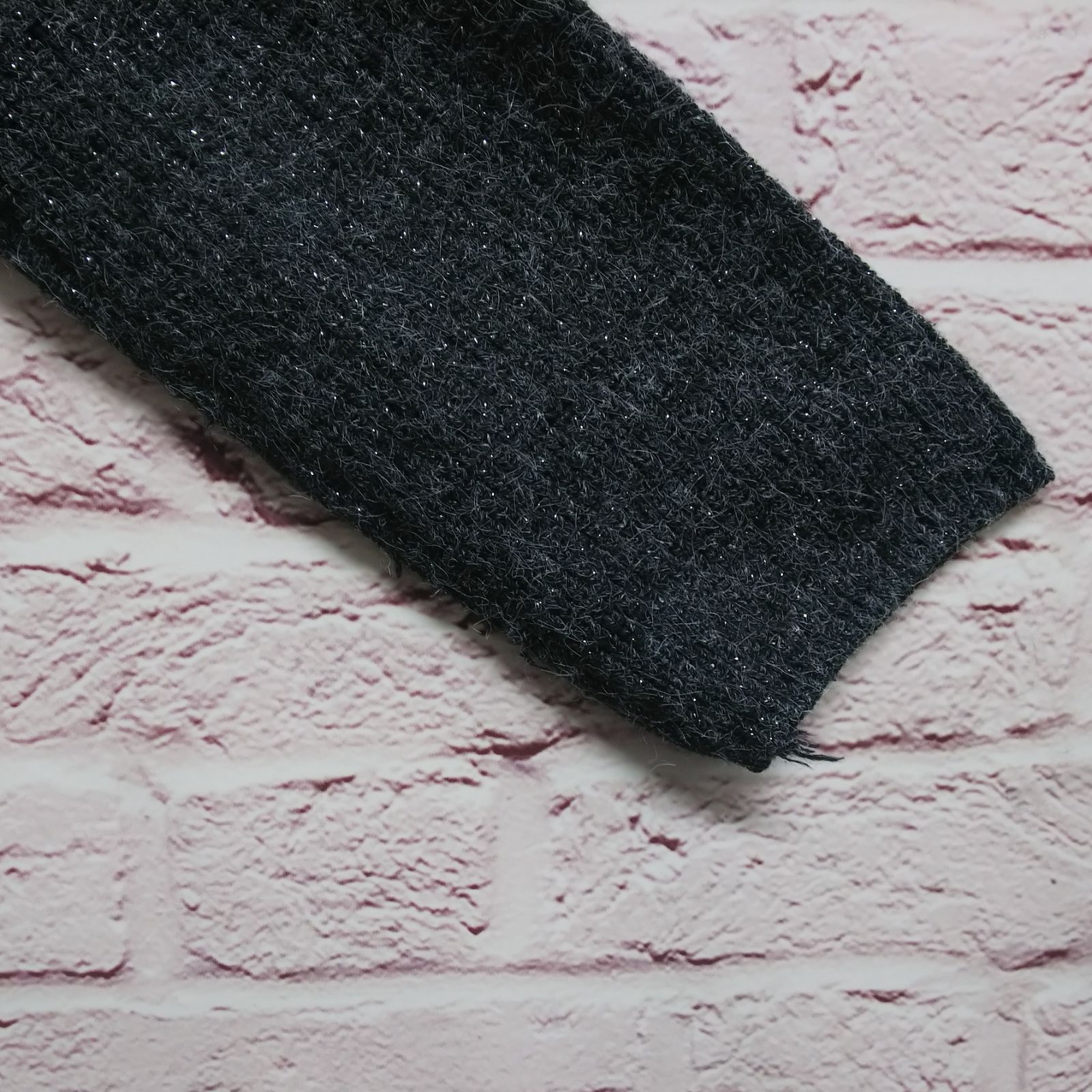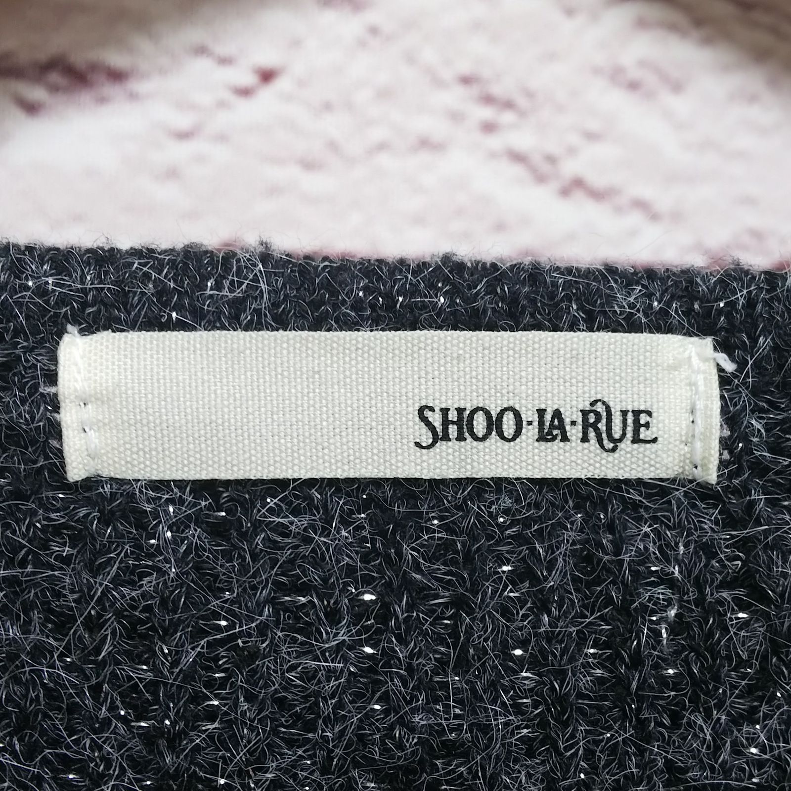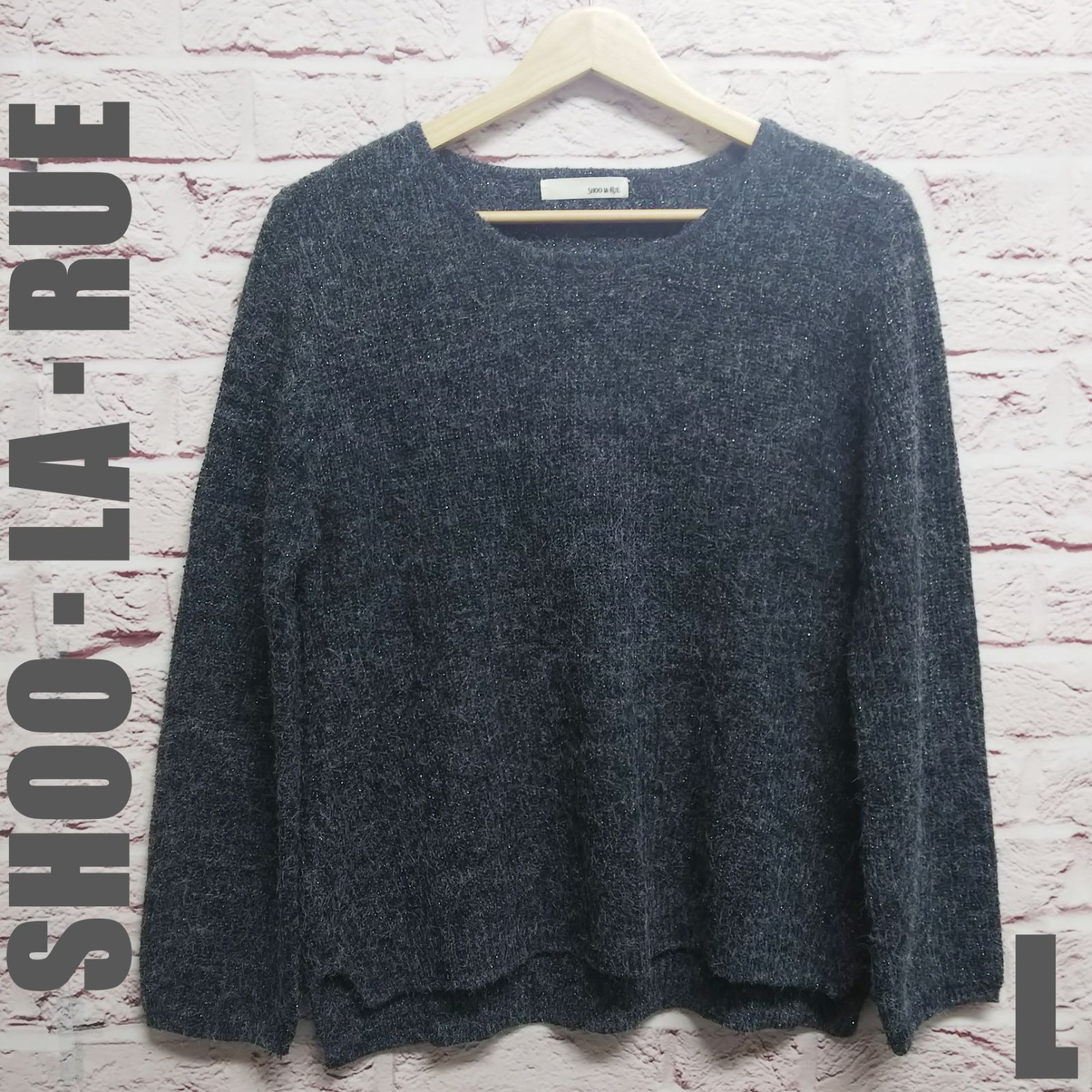 ラメ入りで、後ろ身頃の方が若干長めのデザインのセーターになります。