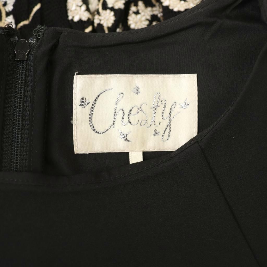【商品名】チェスティ Chesty ノースリブ切替 刺繍ワンピース メッシュ 0 ブラック ベージュ ホワイト /CX ■OS