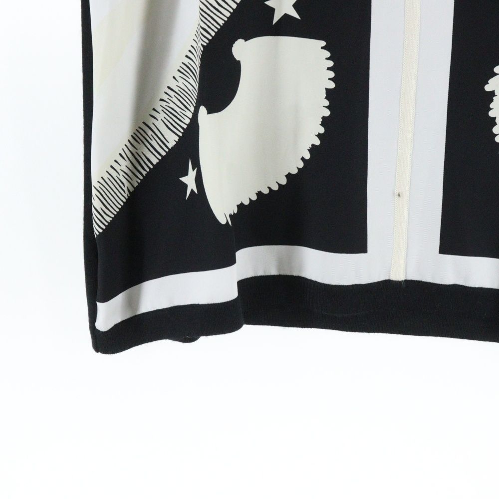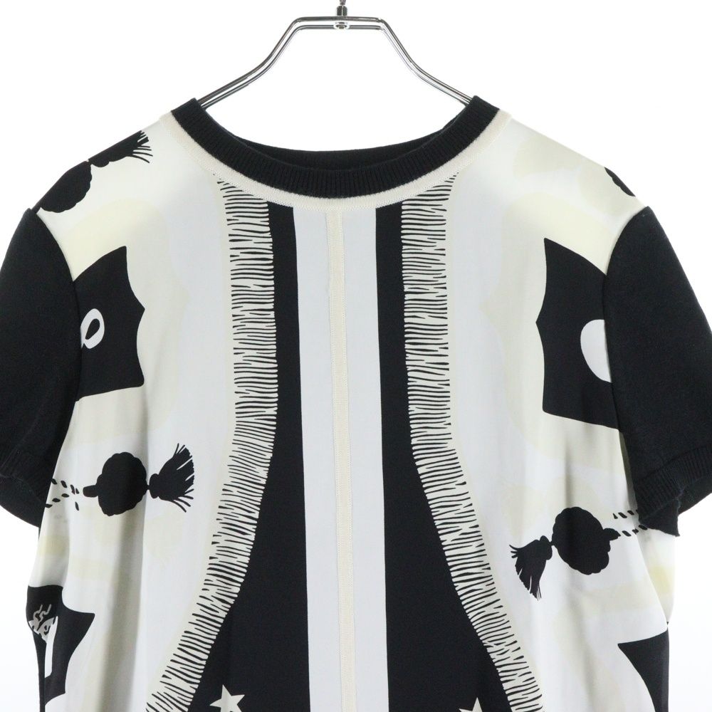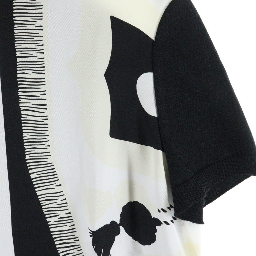 【品名】ツイルレーヌ 柄プリント シルクスカーフ切り替え カシミヤ クルーネック 半袖ニット セーター ブラック/ホワイト レディース