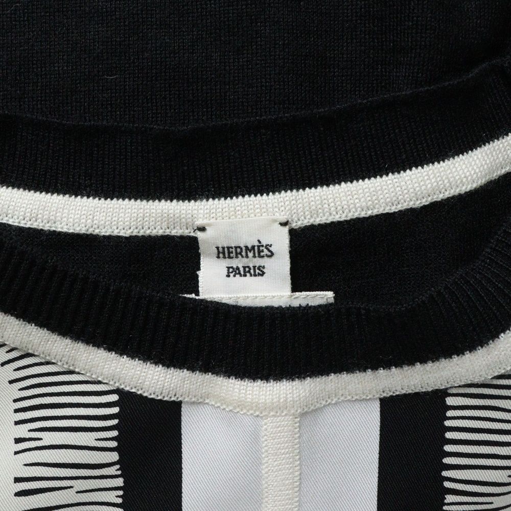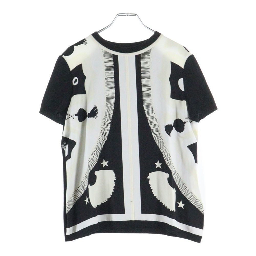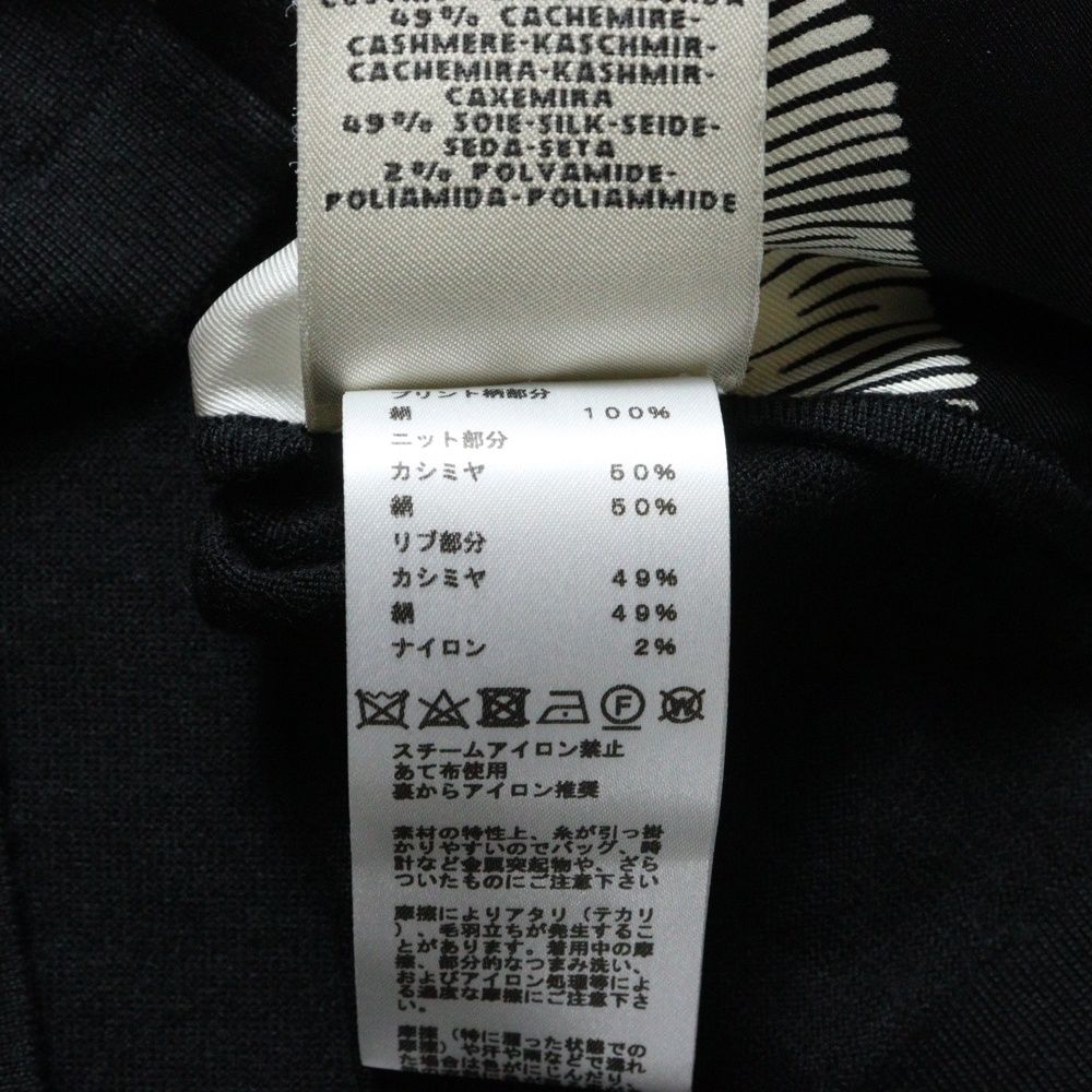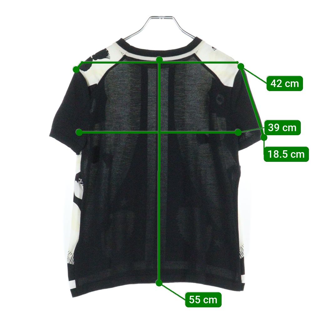 【品名】ツイルレーヌ 柄プリント シルクスカーフ切り替え カシミヤ クルーネック 半袖ニット セーター ブラック/ホワイト レディース
