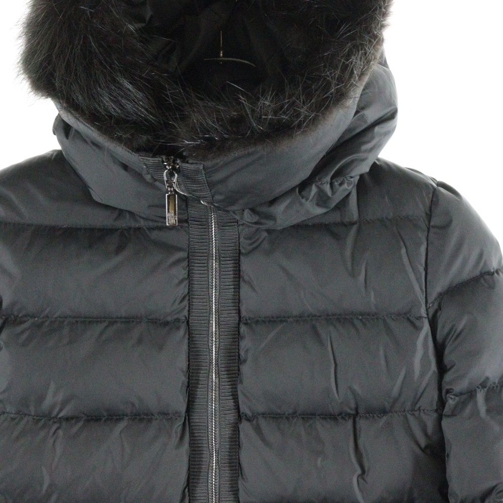 【品名】FABREGES GIUBOTTO ファブレジェ ジュボット ベルト付き ダブルポケット ファー付き ジップアップ ダウンジャケット レディース グレー 420934691820