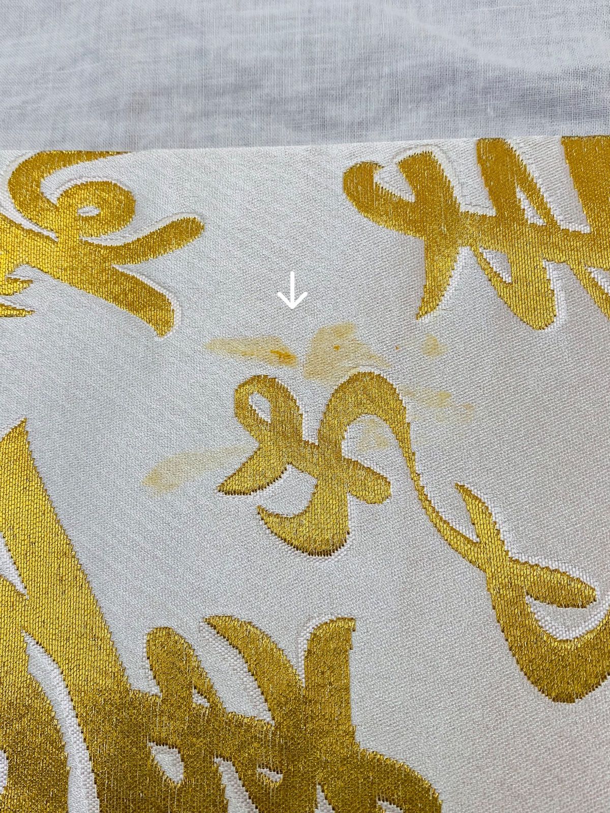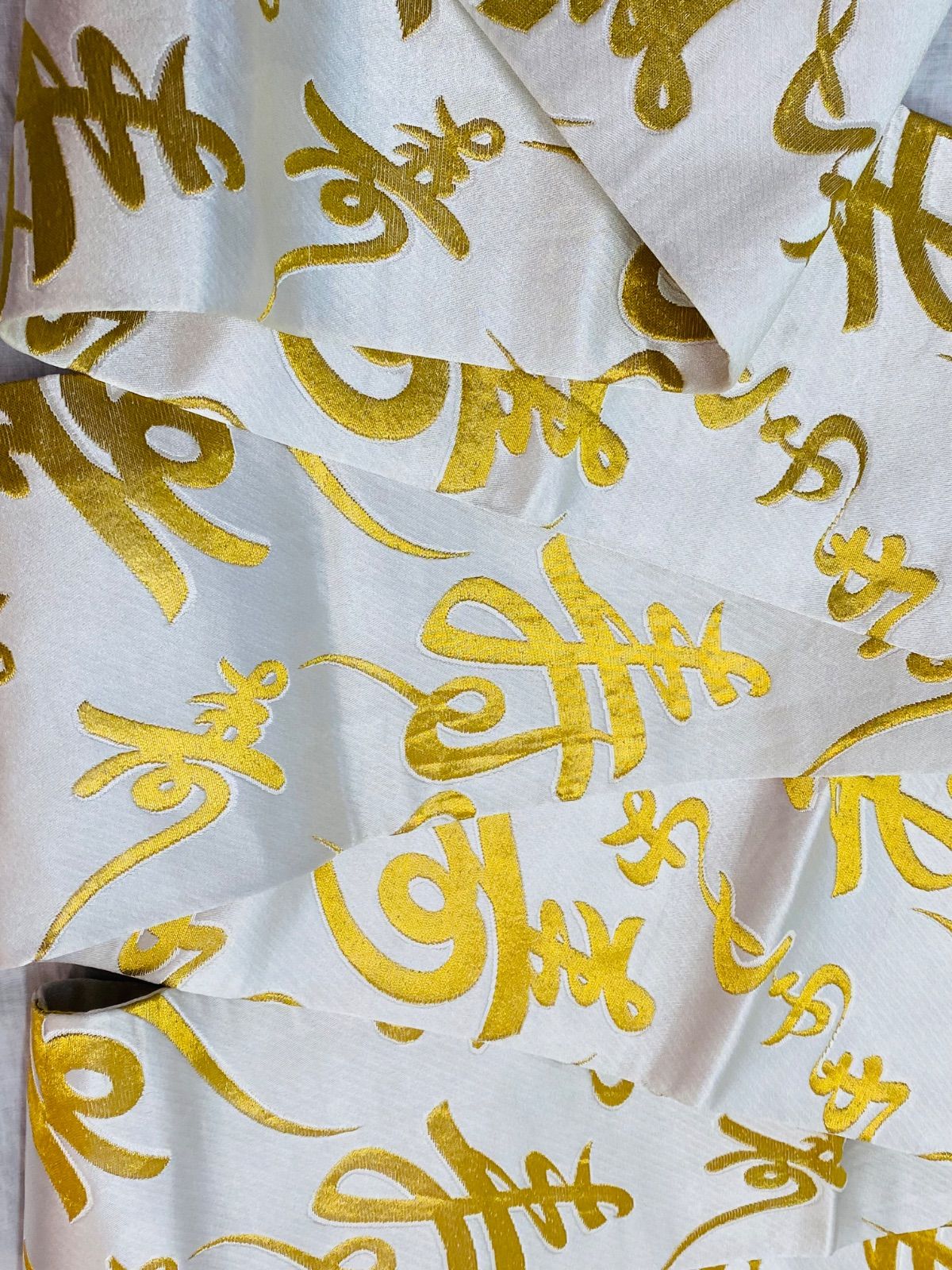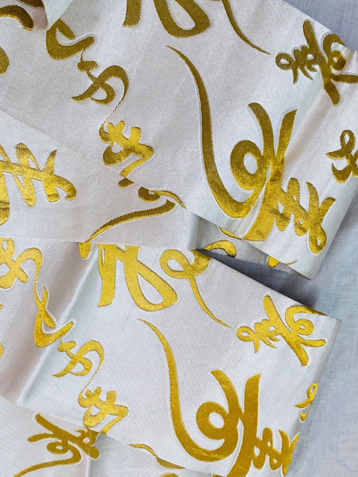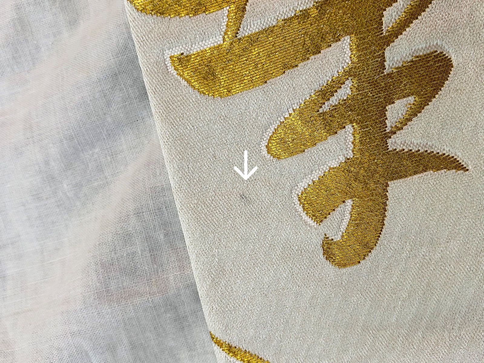 【帯】半幅帯 踊り用帯 白×ゴールドカラー 文字柄 寿 正絹 着物 和装 OBI71