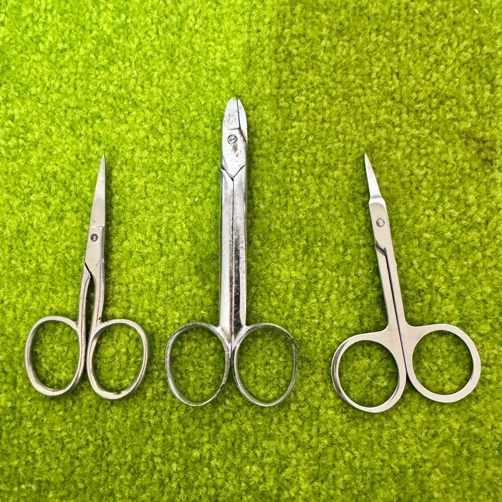 この商品は**「歯科治療・技工で使用される中古の精密ハサミ(金冠ばさみ等)3本組」**です。