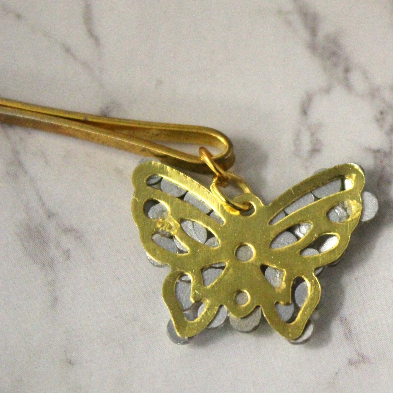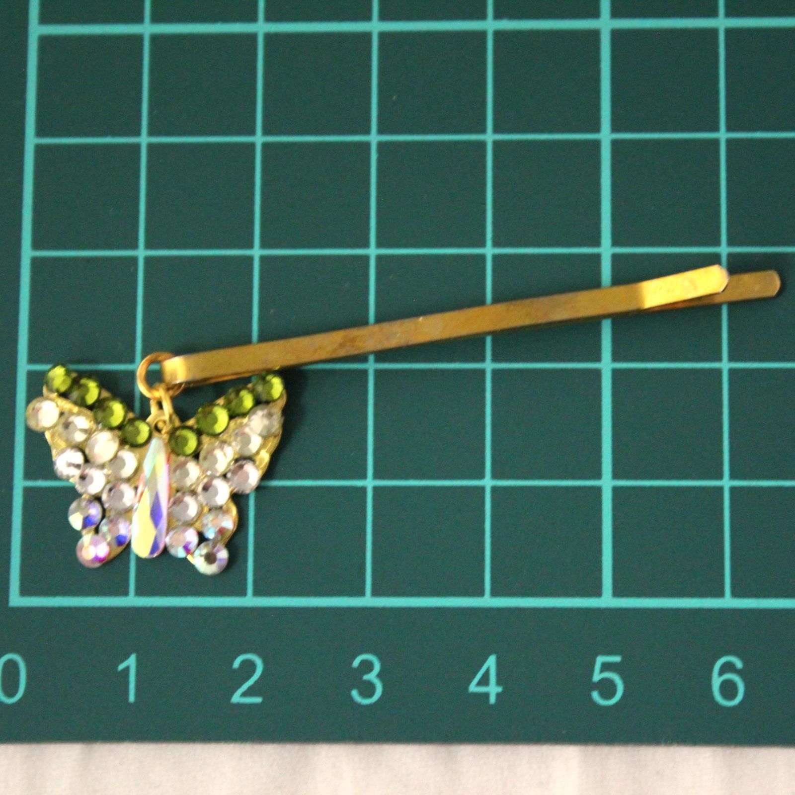 蝶のすかしパーツにラインストーンを貼り、キラキラかわいいヘアピンにしました♡