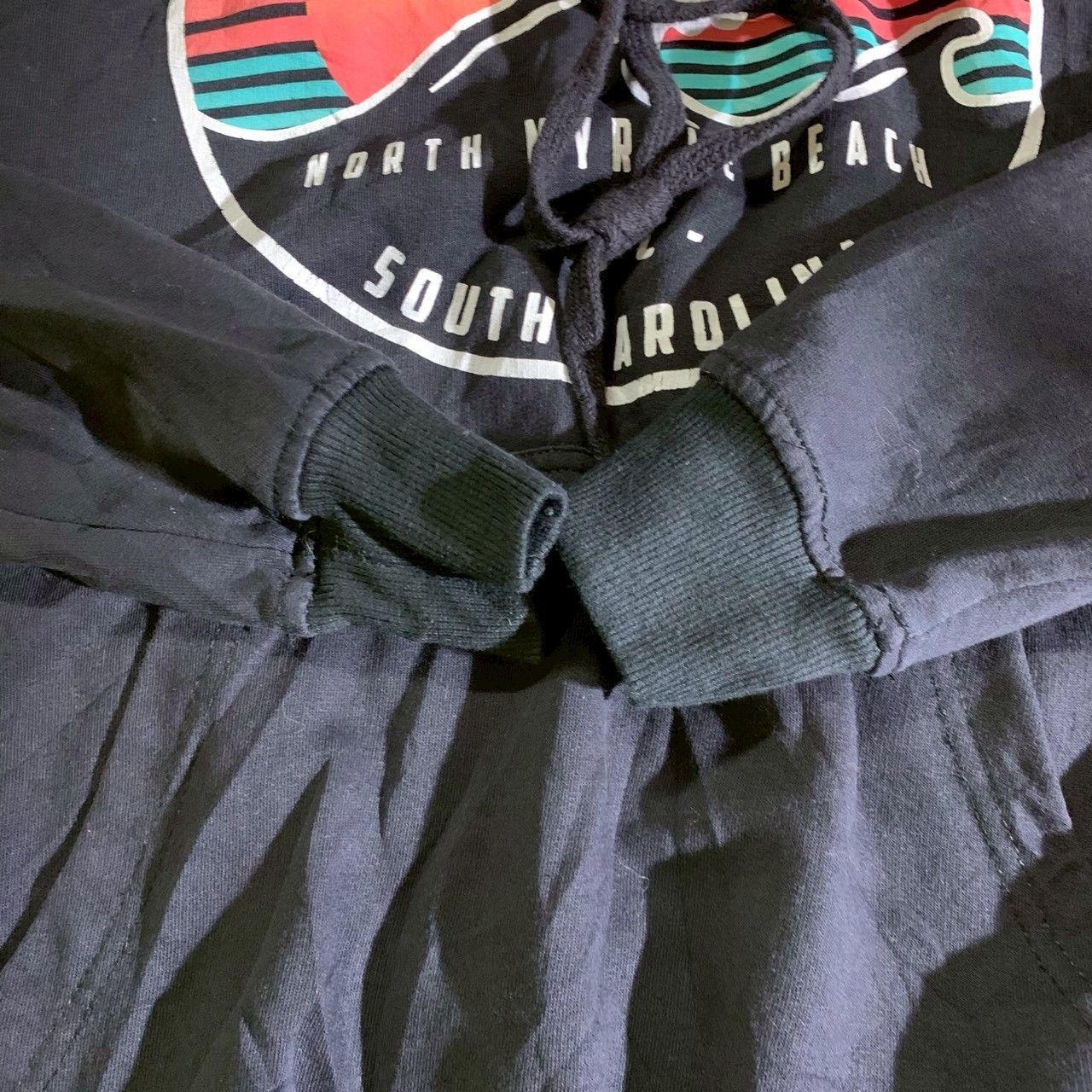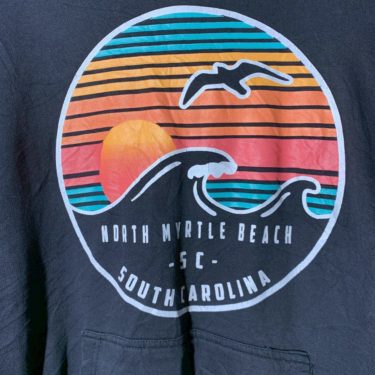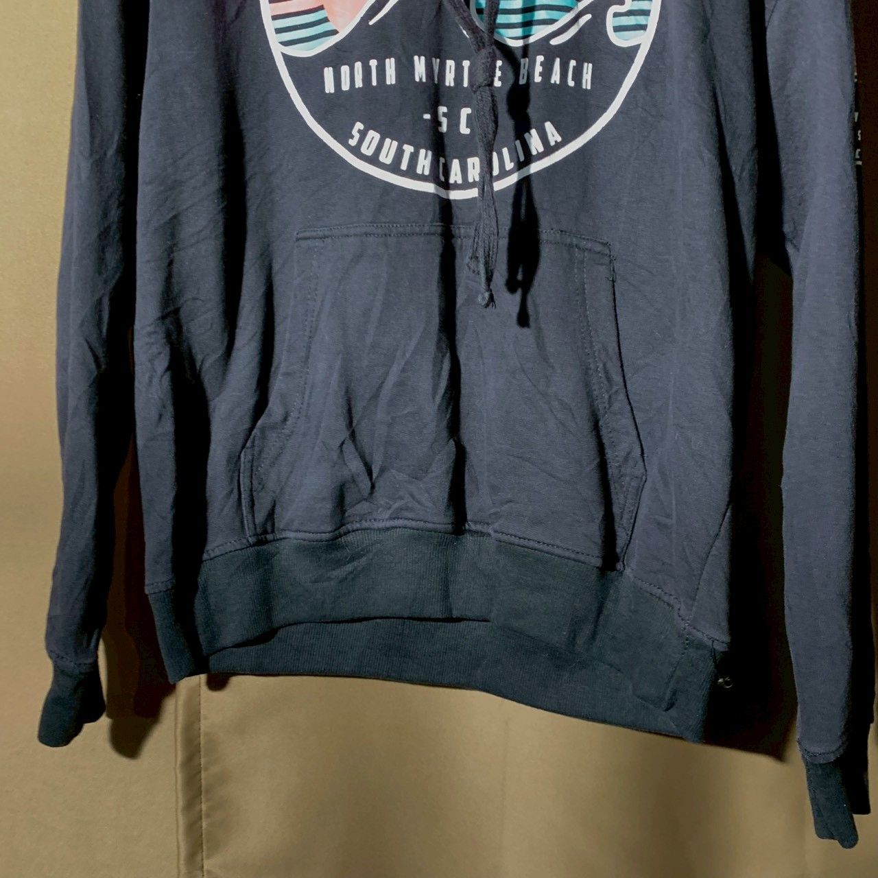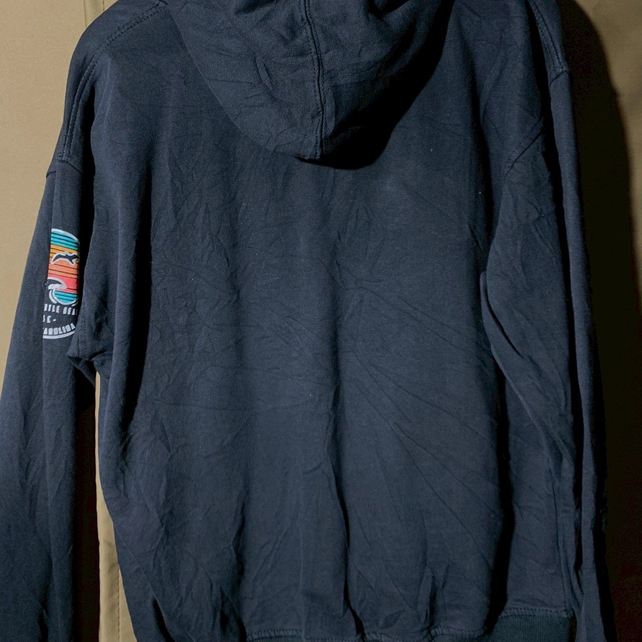 BREEZE ネイビー パーカー L ビッグプリント カロライナ ビーチ フーディー プルオーバー 秋冬 古着 TK11452