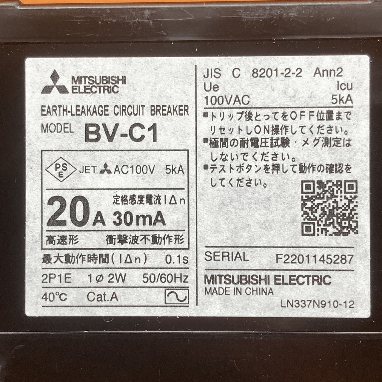 漏電遮断器(3コセット) 三菱電機 BV-C1 2P1E 20A 30mA