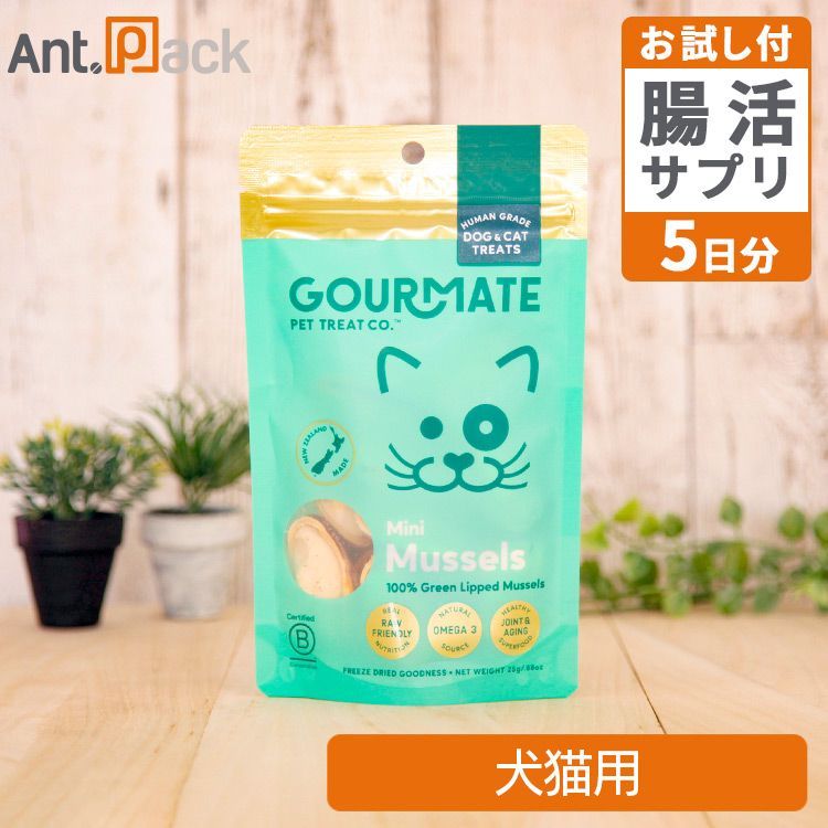 グルメイト フリーズドライトリーツ オーガニック ミニ・緑イ貝 犬猫用 25g+腸元気ケストースタブお試し5日分