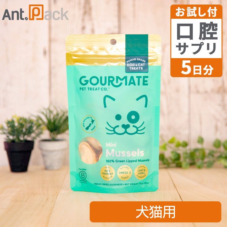 グルメイト フリーズドライトリーツ オーガニック ミニ・緑イ貝 犬猫用 25g+セラプトfm(タブレット)お試し5日分