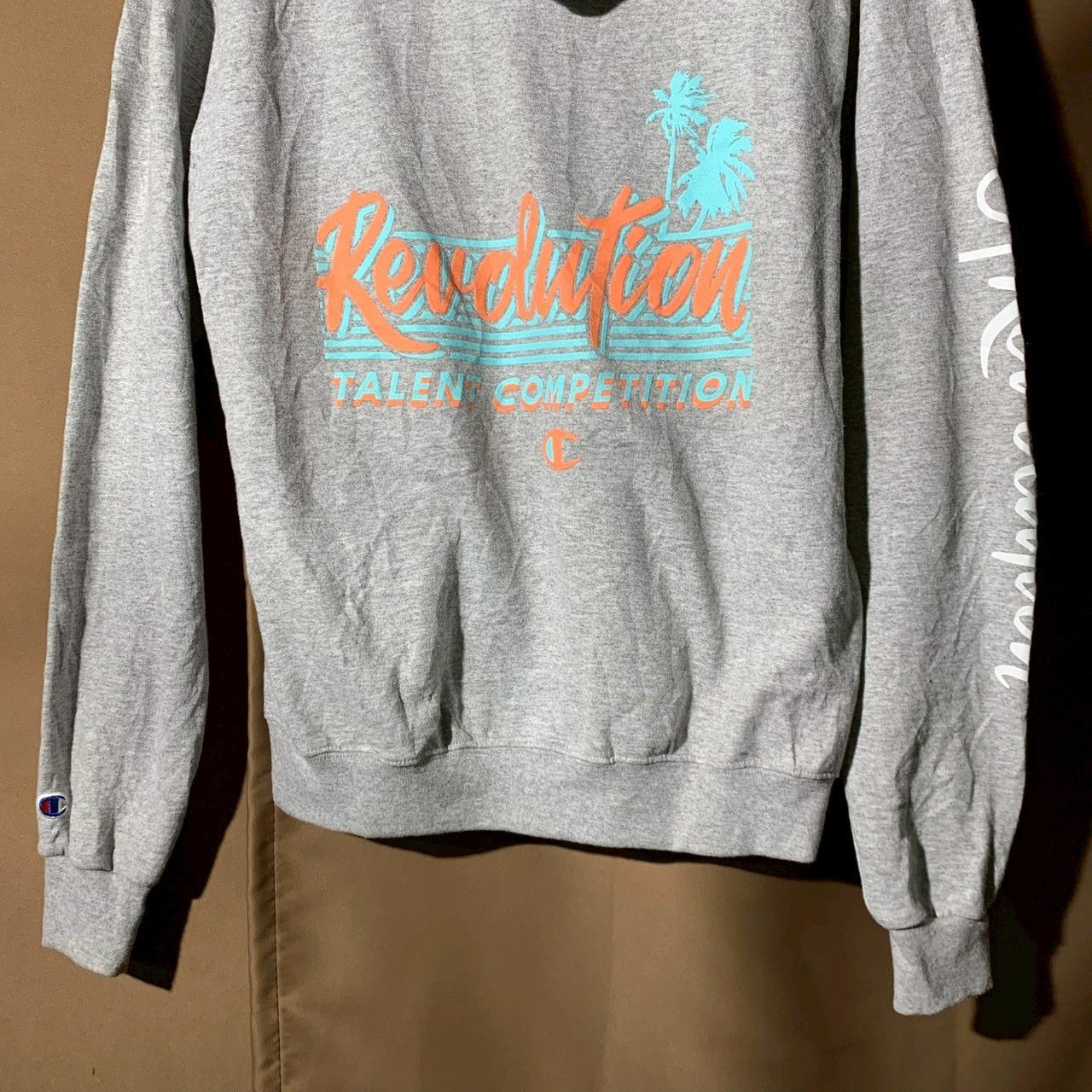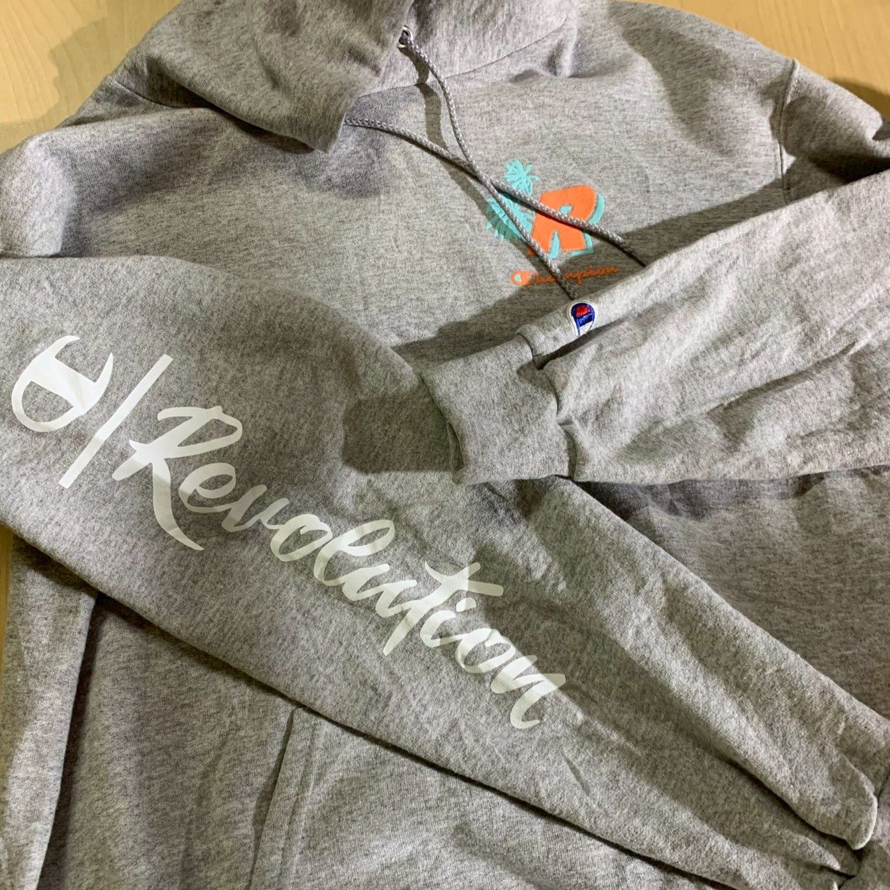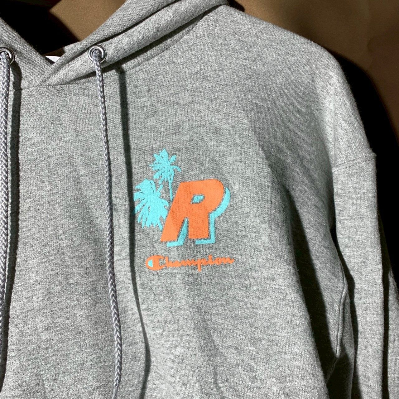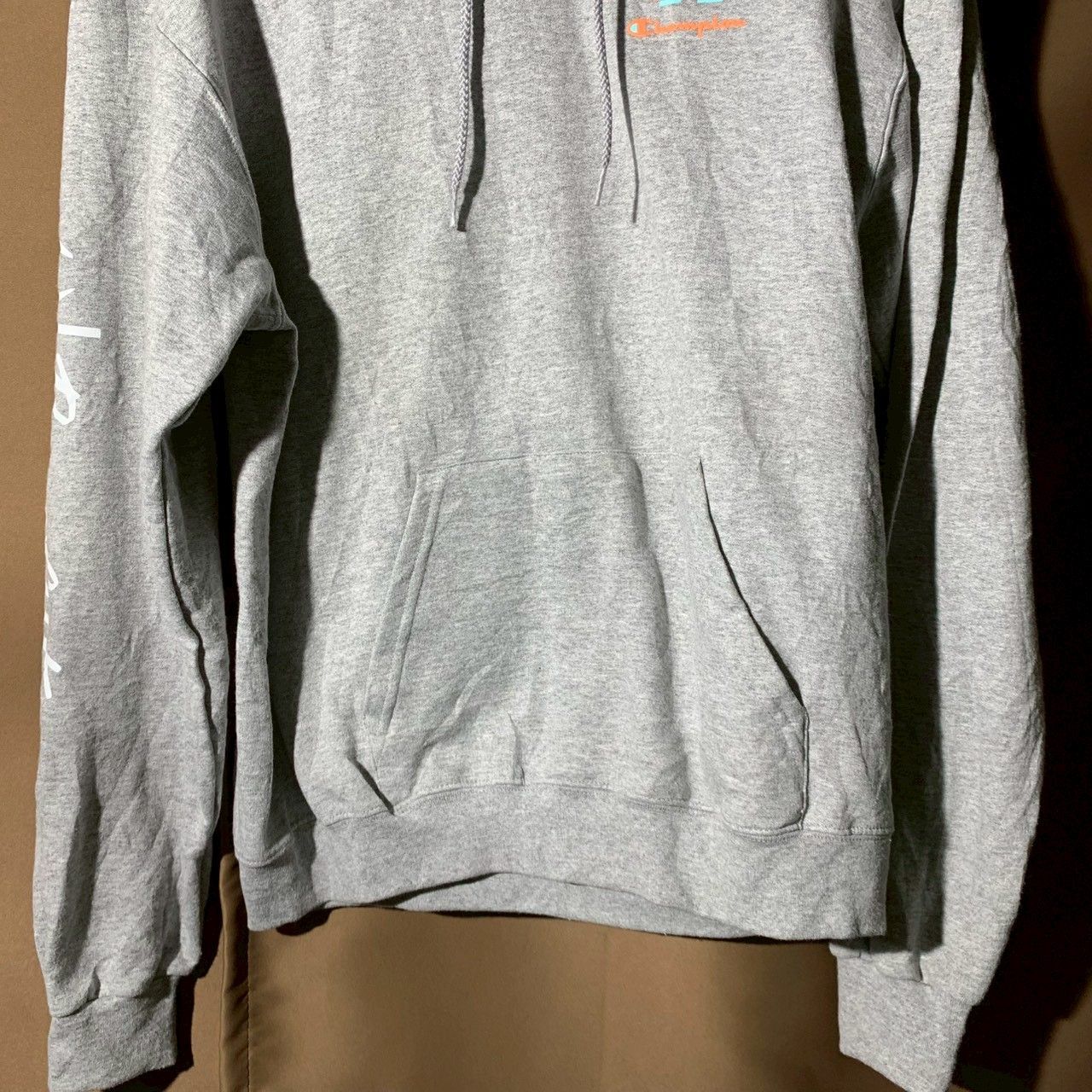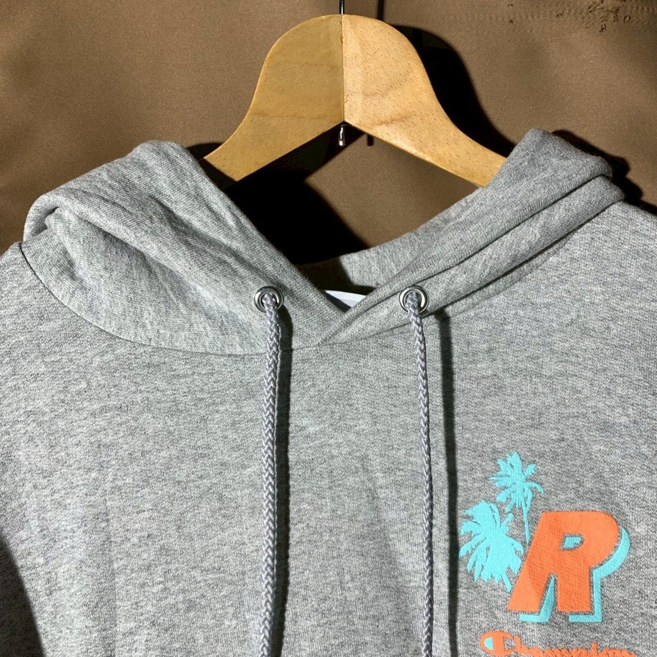 Champion ライトグレー パーカー XL バックプリント フーディー プルオーバー 秋冬 古着 TK11454