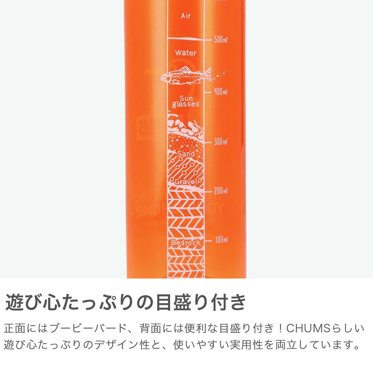 CHUMSらしいデザインを盛り込んだブービーボトル。耐久性・耐熱性に優れ、割れにくいコポリエステル製のボトルは、パッキンを使用しないでしっかりと密閉できる構造で衛生的。使用後のお手入れが楽ちんなのも魅力の一つです。たくさん水分補給したい時にも使いやすく、アウトドアシーンでの食品の収納や持ち運びにも活躍します。