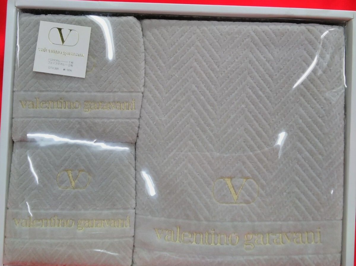 ☆valentino garavani/バスタオル(1枚)、フェイスタオル(2枚) 綿100% グレー