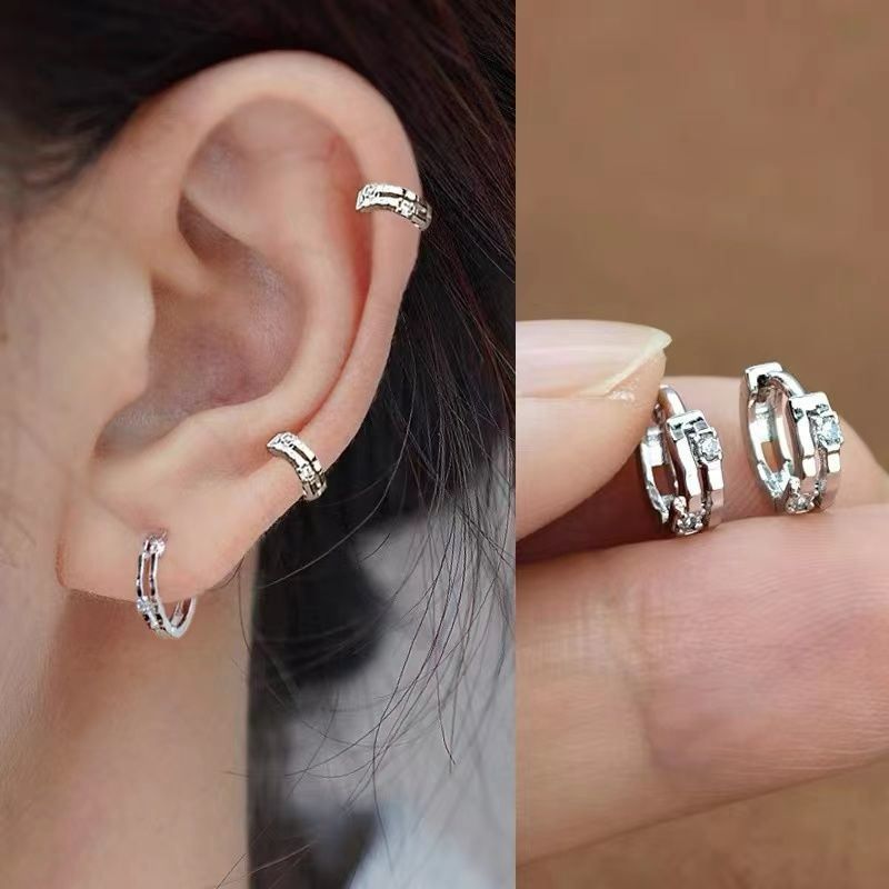 2連構造のフープに、カットデザインとワンポイントストーンを組み合わせたピアスです。