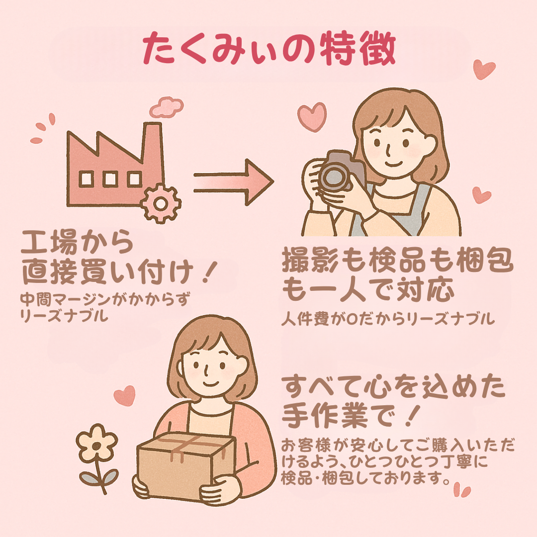 撮影・検品・梱包まですべて一人で丁寧に対応しております。
